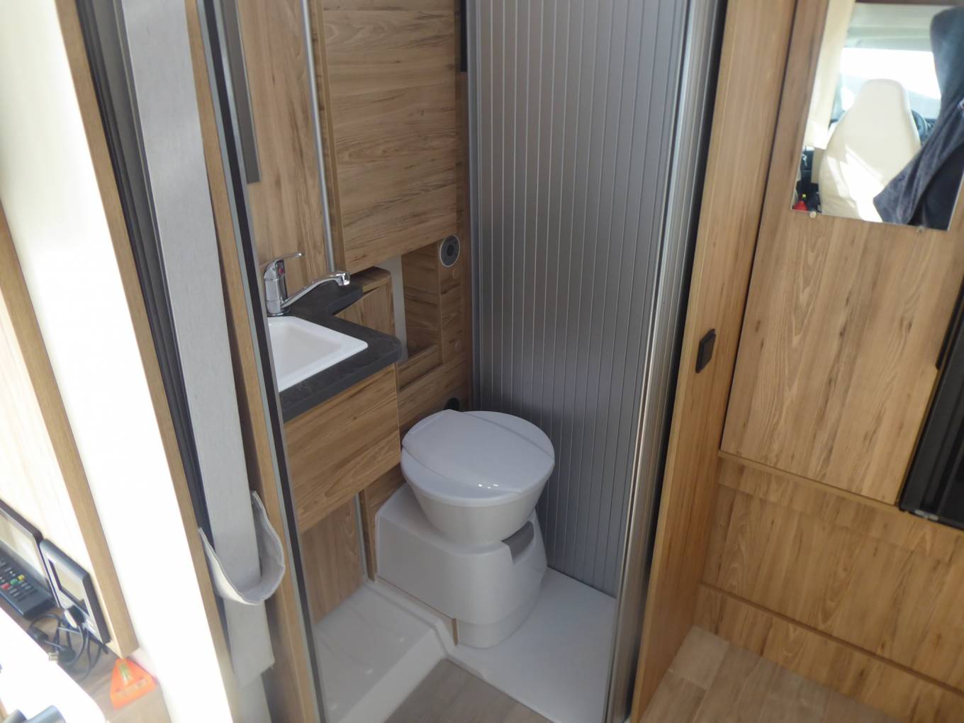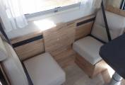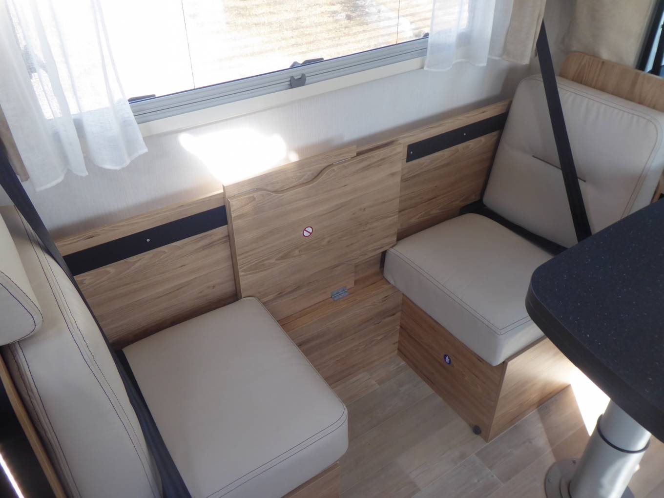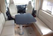 In the forward habitation there are two opposing side sofas, with space for three on the nearside (and two additional seat belts), and for two on the offside. This comfortable and spacious dining/leisure area, which can be enhanced with the use of the swivel cab seats and an adjustable fold-open table, can in turn be reconfigured to create a transverse double berth.