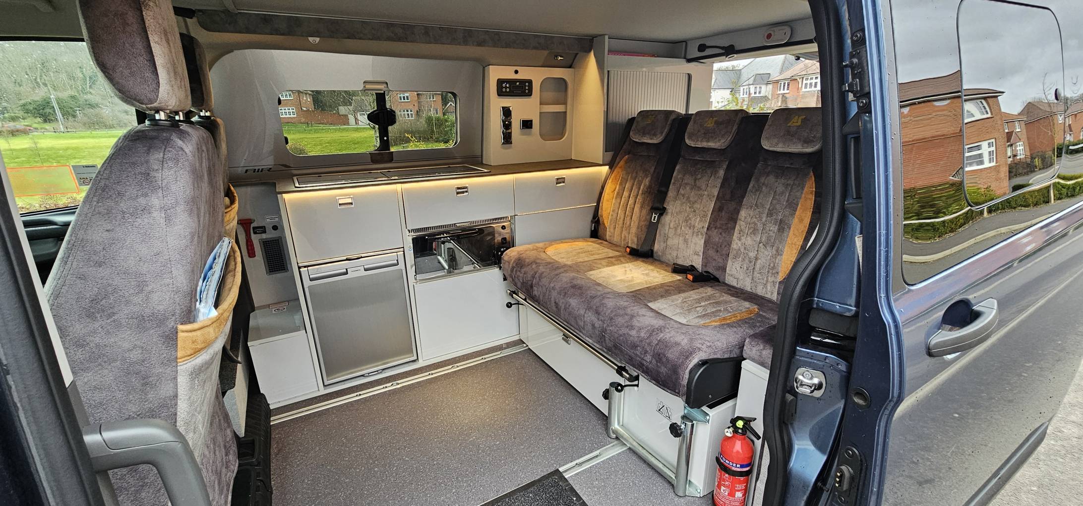 Whether you’re looking to live an adventurous nomadic lifestyle, taking the family for a BBQ at the beach or simply doing your weekly big-shop the Auto-Sleepers Custom Air is equipped for all possibilities. The spacious interior can quickly convert to a fully equipped living area or slide the Reimo sliding track travel seats forward and take advantage of the vast industrial sized storage space. The interior is protected by the rear privacy windows and features a kitchen with sink, 2 burner gas hob, grill & fridge. There are plenty of storage cupboards including a wardrobe with hanging rail. Up to three passengers can travel securely in the M1-tested rear bench seat, complete with headrests, outer seat armrest, two ISOFIX child seat attachments & offers you more storage areas below. When you’re in need of a rest at the end of the day, the Air’s living area transforms into a commodious evening sanctuary, perfect for relaxing with a book or catching 40 winks. Thanks to the gas-assisted struts, the tilt roof can be easily raised for additional space and the top drop down creates an additional sleeping area. Up to four people can sleep in the Air – two on the roof bed (with ladder, lighting & windows) and two on the easy-to-convert rear bench seat. The great equipment level doesn't stop there in this high quality campervan, it's also kitted out with solar panel, awning with light, slide-out entrance step, under-slug gas tank, deck shower, mood lighting & USB sockets. While on the road the driver benefits from front & rear parking sensors, steering wheel controls, cab air conditioning, cruise control and multi-functional display screen with reversing camera, Sat Nav, DAB radio with MP3 player, USB connection & Bluetooth handsfree.