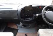 The spacious cab has two belted seats. There is a Kenwood radio and reversing camera