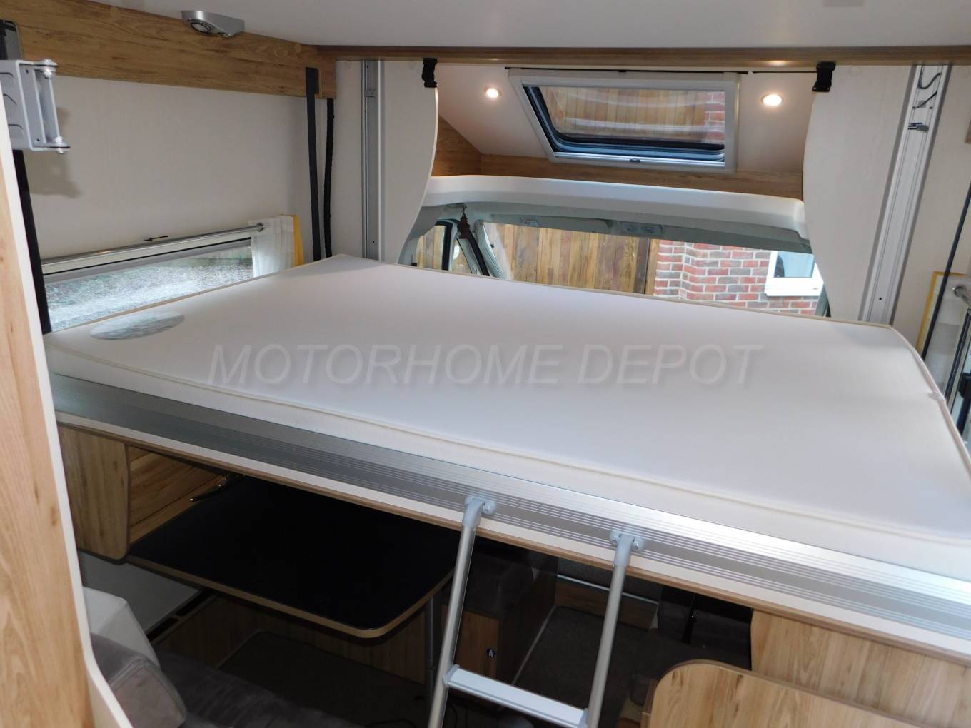 - A luxurious electric drop down large double bed is above the lounge area, with safety nets, lighting, plus aluminium ladder.