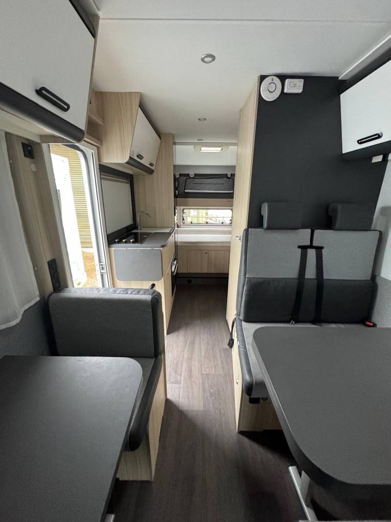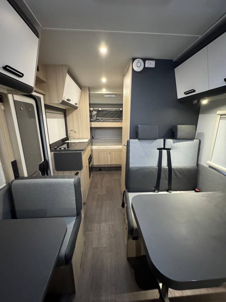 This seven berth, seven seat-belt 0ne owner motorhome is a perfect family motorhome as it is so roomy -with sleeping for up to 7 people with a mixture of overcab bed, rear bunks and dinette which can be converted. Unusually for a motorhome of this size and berth it weighs just 3500KG so can be driven by any licence holder with no restrictions.