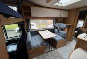 It has the added benefits of Refillable LPG tank and Air ride suspension, bike rack, reverse camera and wind our awning. There are two leisure batteries an alarm and several usb points