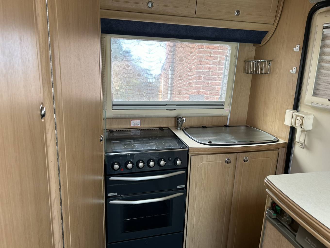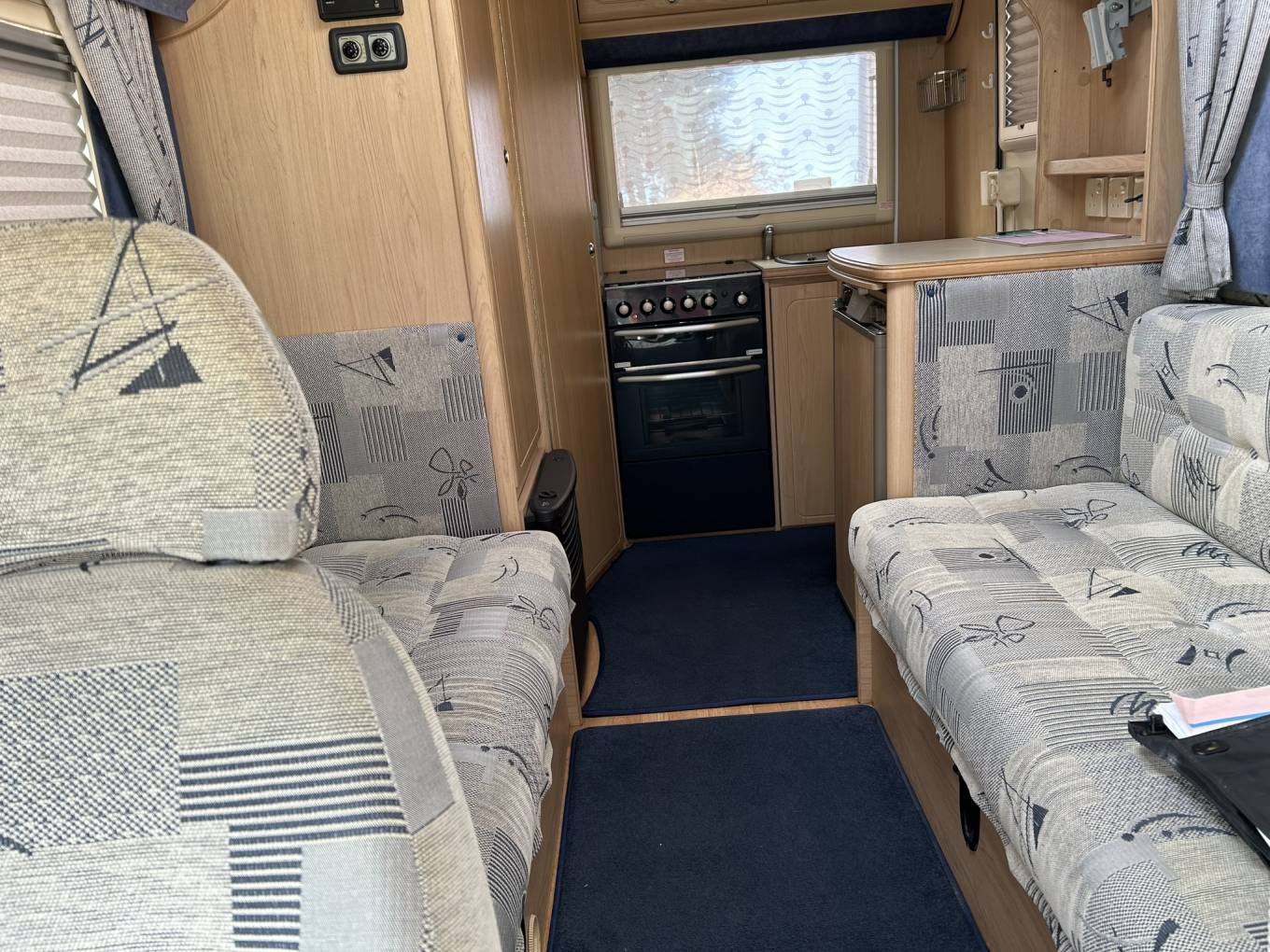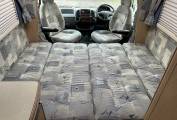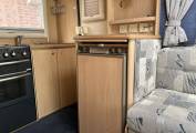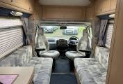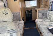 This compact but spacious motorhome is ideal for a couple. It has an end kitchen consisting of oven with hob, fridge with freezer compartment and sink with drainer. It has plenty of storage under the sink and lockers above for all your kitchen essentials. To the rear of the motorhome you`ll find the shower room with cassette toilet, hand basin, storage and mirror. There is a wardrobe that stores the foldaway table. The seating/lounge area has two long bench seats that convert into a double bed. The two front swivel seats offer extra seating to the lounge area. There is plenty of overhead locker space. The van has blown air heating. It comes with a wind out awning, bike rack for 2 bikes and a handy tow bar.