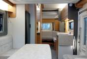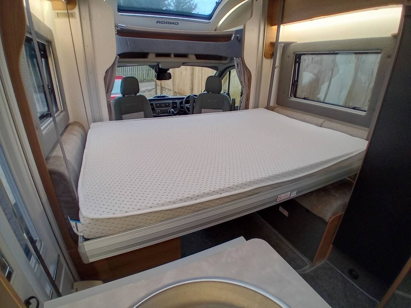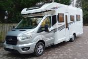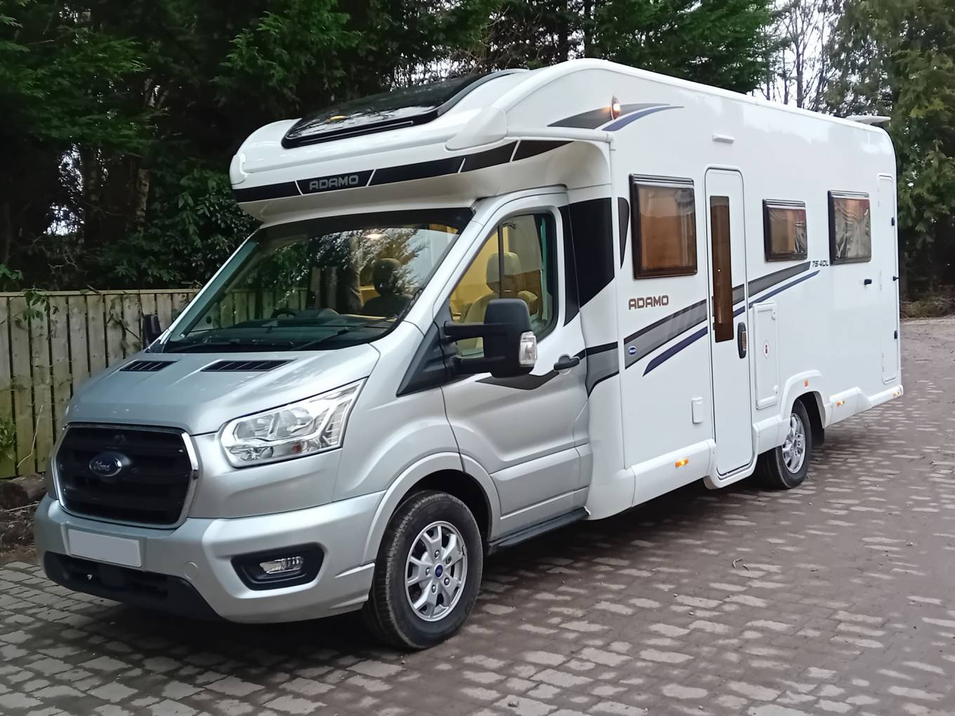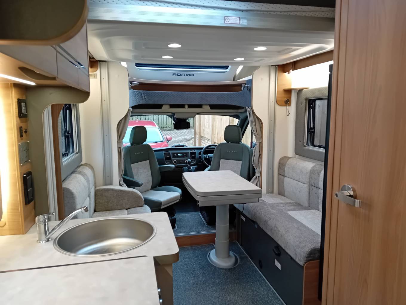 Modern, stylish and lightweight, with a powerful engine, automatic gearbox, four seatbelts and two drop down double beds, the Adamo 75-4 ticks alot of buyer boxes, having plenty of seating space with twin dinettes, plus a low rear garage store. The layout appeals to a wide range of uses, from family holidays to extended trips away, thanks not just to the internal space but also the extensive external stortage too. Plated at 3500KG, the Adamo can be driven on a standard car licence and is 7.5 metres long.