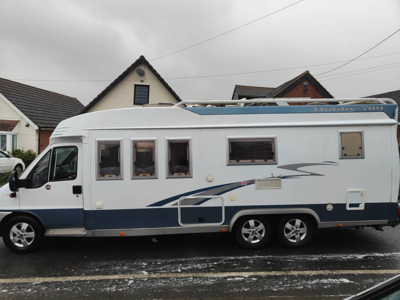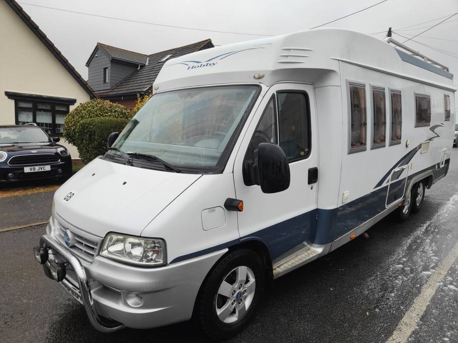 This is an outstanding example of the Hobby 700 motorhome. This German built motorhome features a fixed bed to the rear, spacious and well equipped kitchen to the centre and a very large seating area to the front that utilises the 2 rotating Captains seats. This 4 berth, 4 seatbelt model is plated at 4500kgs so you will need the appropriate licence. Based on the excellent Fiat Ducato cab with an Alko chassis, this 2.8jtd derivative has the 5 speed manual gearbox and cab aircon. Only 3 owners from new and an MOT until jan 31 2025 with great history. This example includes satellite dish, solar panel, reverse camera, tv and aerial and a removable motorcycle rack. Based in Kent and more pictures available.