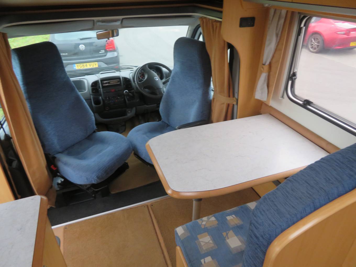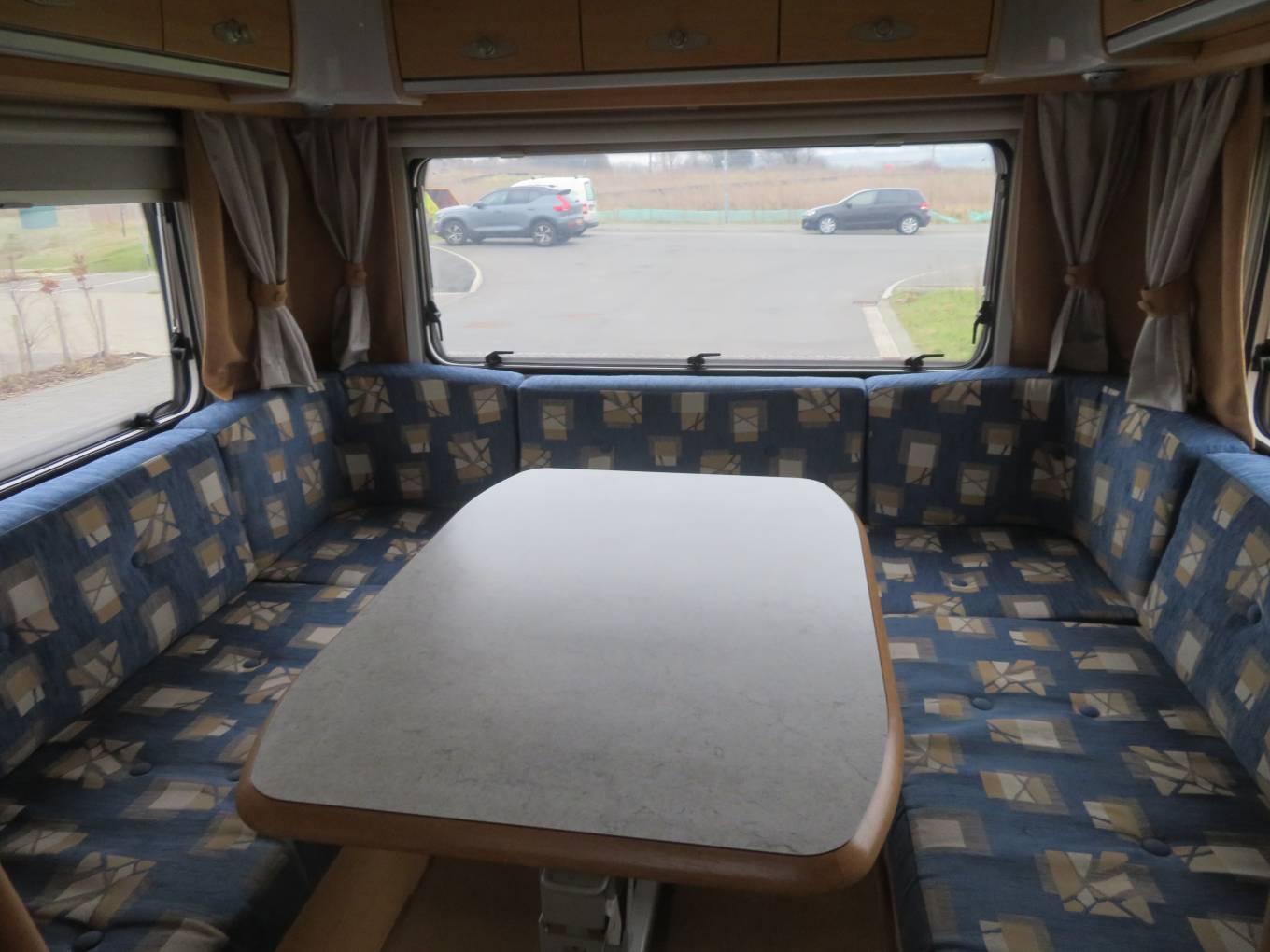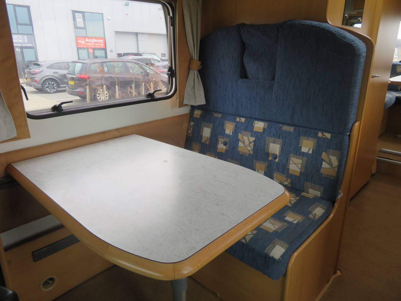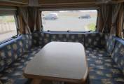The end lounge can easily accommodate upto 6 people sat around the large dining table and would be perfect for entertaining. Covered with seat protective covers which really give the van a homely feel.