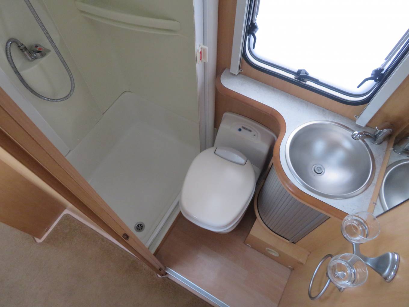 Classed as a 4/5 berth we have sleeping options in the over-cab for two adults, a further double in the rear when the lounge is converted and a child’s bed to the front dinette, which could sleep either 1 adult or two small children. There are 4 travelling seats in the motorhome making it the perfect van for families, or grandparents looking for extra travelling belts for when the grandkids want to come along.