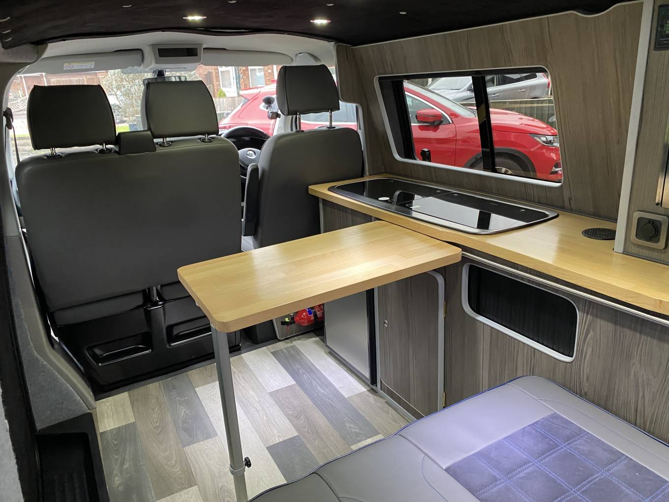 and significant storage space beneath. This van has a fixed roof rather than a