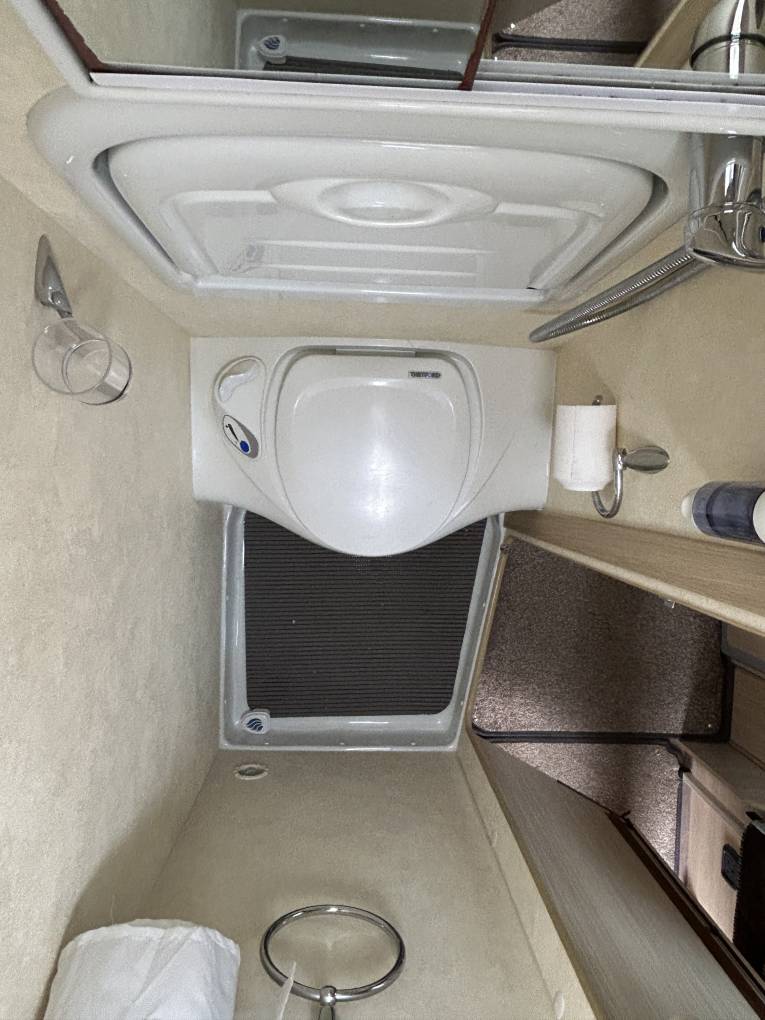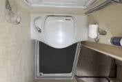 The washroom has a shower with the showerhead built into the tap. There is a Thetford cassette toilet and a foldaway wash basin which saves space and a mirrored bathroom cabinet to store your toiletries.