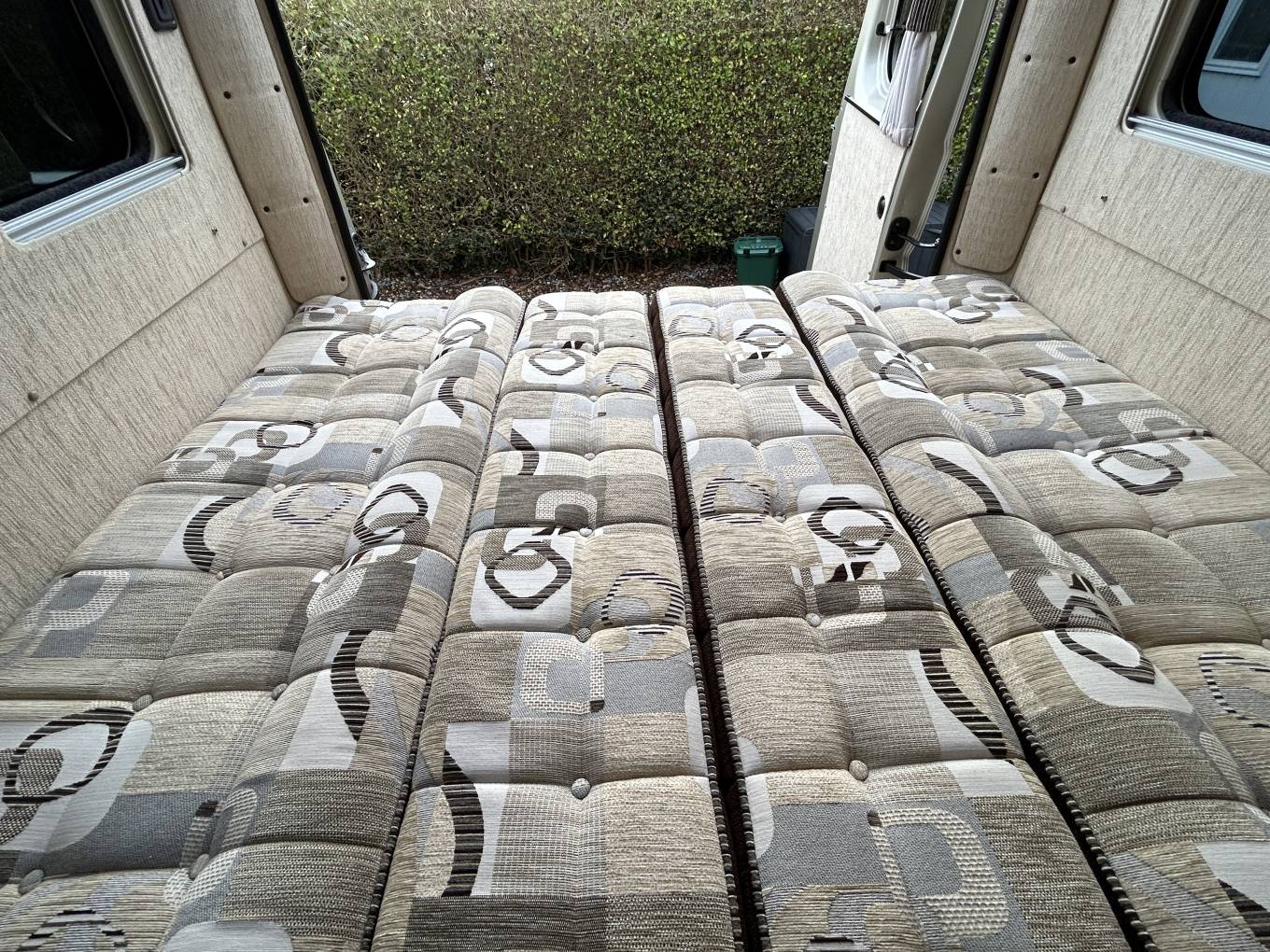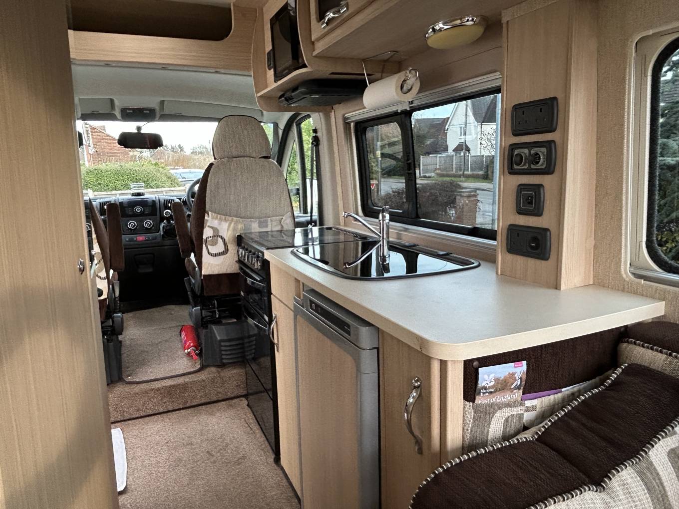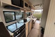 The kitchen is very well equipped so you'll have no excuses for not rustling up great food on the go. There is a dual-fuel hob with an electric hot plate and 3 gas burners, an oven and grill as well as a microwave, so whether you are on a site with electric or wild camping on gas, you are perfectly catered for.