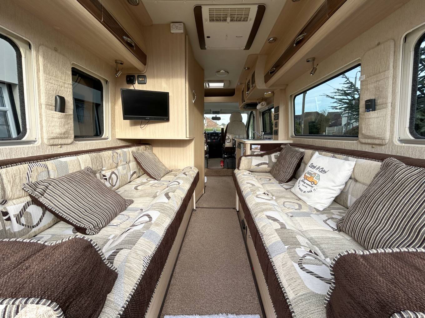 Based on the excellent Peugeot Boxer chassis with the powerful but economical 2.2 litre engine this Warwick will get you to your holiday destination with the minimum of fuss. The cab area is spacious for both front passengers and the air conditioning will keep you cool on hot days. There is a reversing camera, a radio cd player, electric windows and mirrors, steering wheel mounted controls and cruise control. A major benefit is that rear air suspension has been fitted to guarantee you a smooth ride wherever your adventurous spirit takes you.