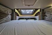 Above this area is a large electric, drop-down bed that is accessed using a folding ladder. The bed can be dropped lower if the dinette double bed is not in use and can then be accessed without need for the ladder.