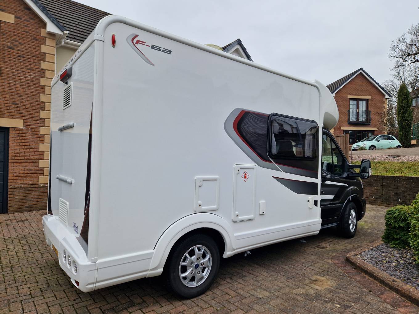Motorhome Depot are pleased to present this superb 2022 Auto-Trail F-line F62 compact motorhome. Based on the Ford Transit, it is powered by the upgraded 2.0 HDi 170BHP engine with the automatic gearbox.Having only completed 6100 miles with 1 owner,this motorhome had its first service in 2024 and will come with a fresh MOT and habcheck so the next owner can have complete peace of mind. It has a GVW of 3500kg with a payload of 700kg so can be driven on a standard UK licence and is only 5.99m long so is very easy to handle.
