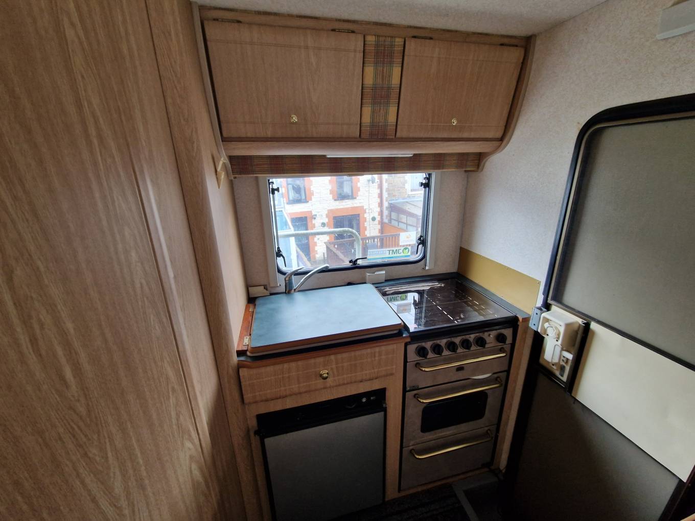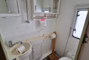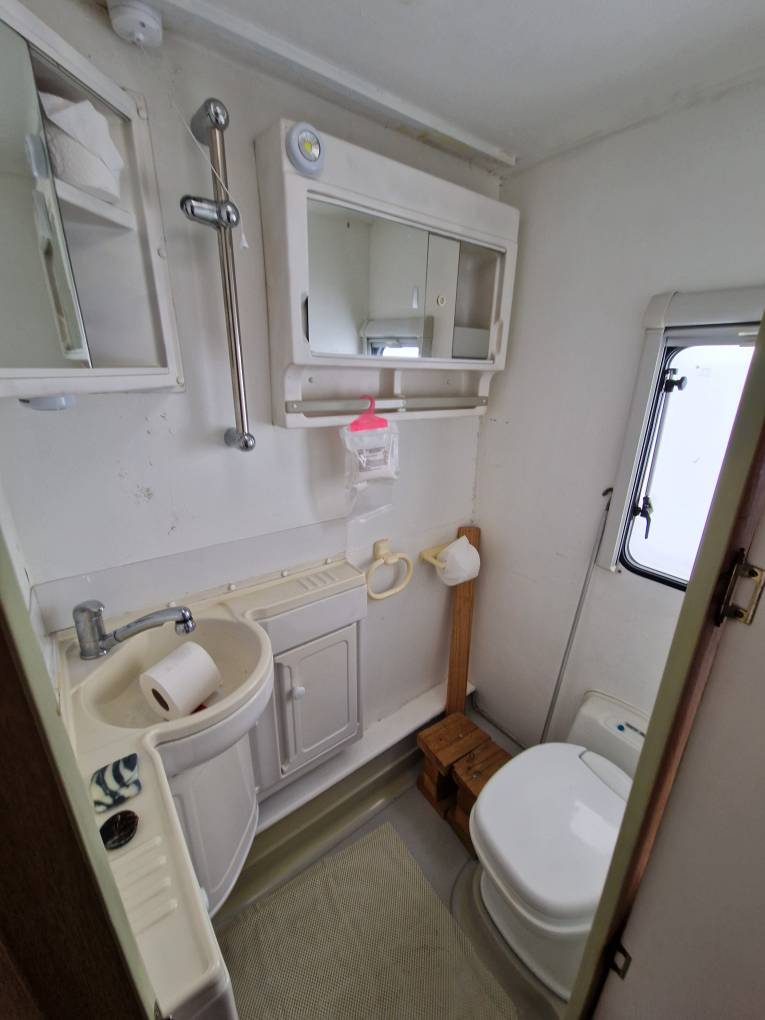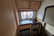 The layout of this compact motorhome starting from the back is the spacious end kitchen this is made up off a 4-ring gas hob , sink with mixer tap, oven & grill and 3-way fridge with freezer compartment. Next to the kitchen is the Autocruise’s generous washroom complete with toilet cassette, sink with mixer tap and shower.