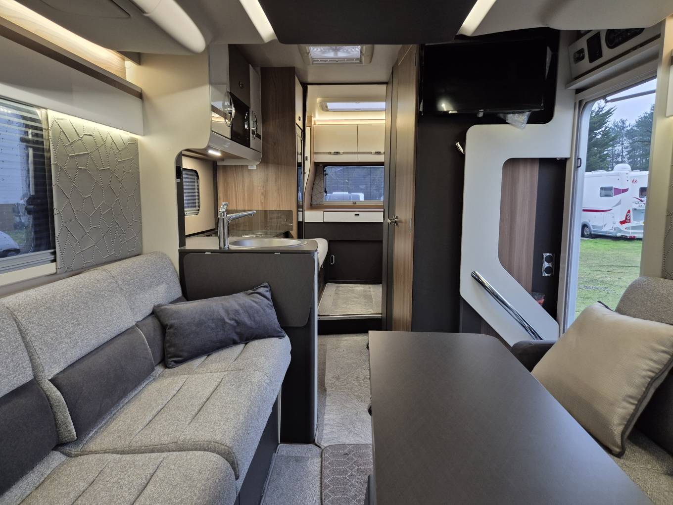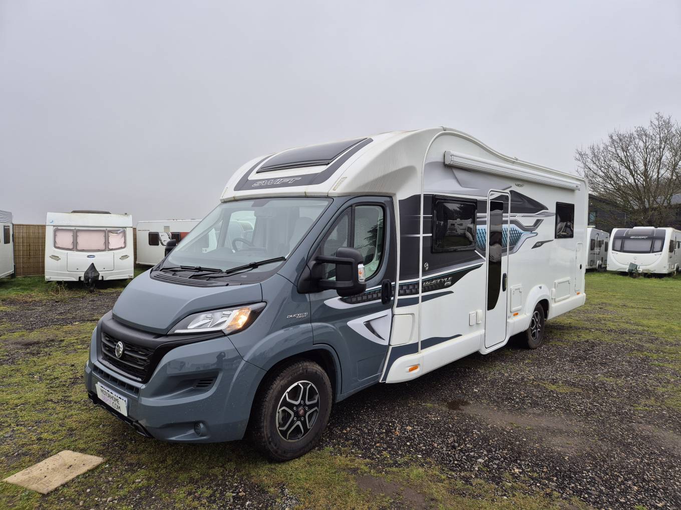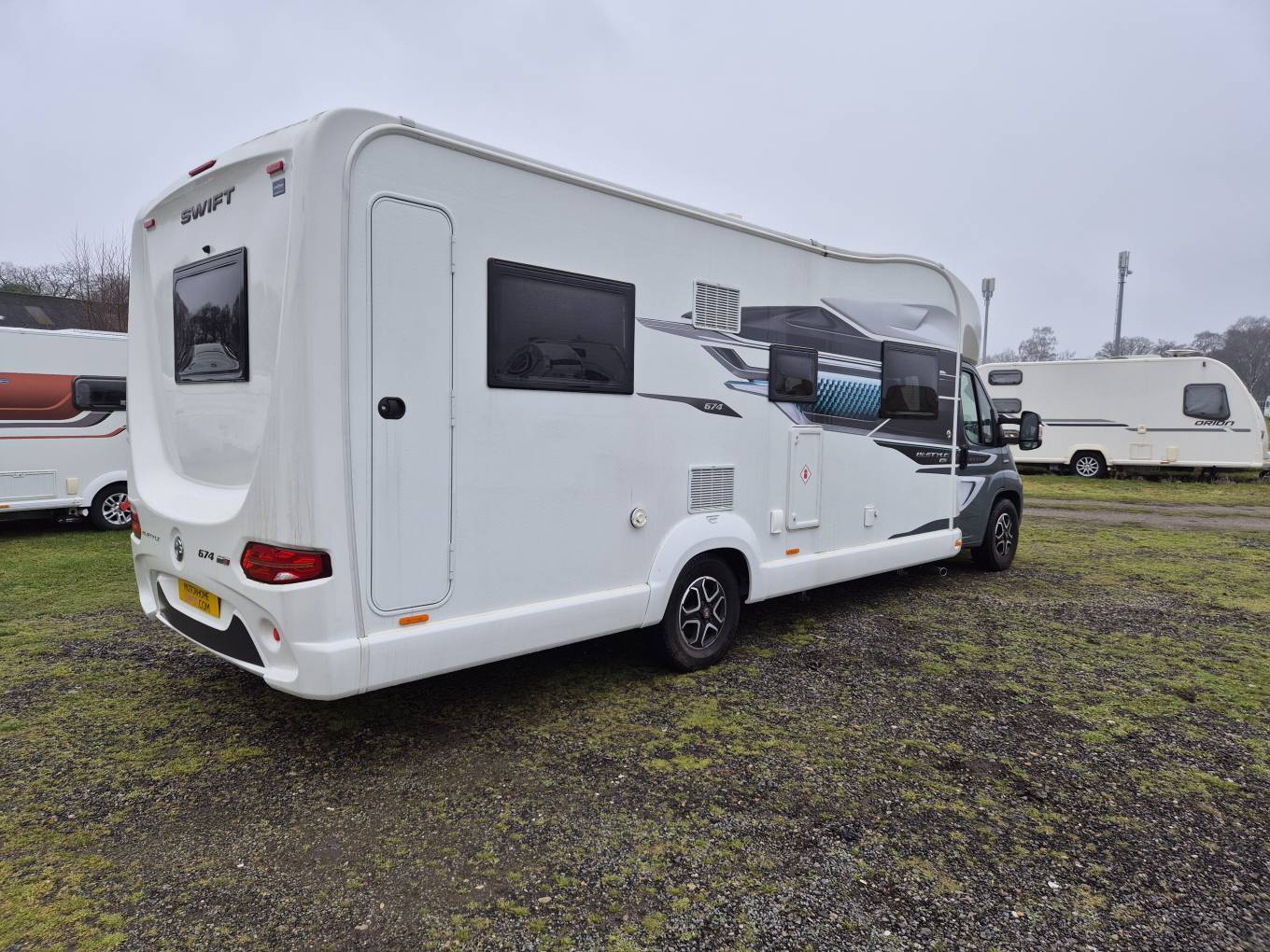 Motorhome Depot are proud to bring to market this stunning Swift Escape 674 Hi-Style Special Edition, Automatic, This 2022 model has covered just under 4000 miles and really is as new condition with a huge price saving over buying a new one .The Swift 674 is a 6 berth layout with 5 travel seats and features a spacious front and rear lounge and they still manage to get a good-sized garage at the rear. As well as the front lounge converting into a double bed, there is also an electric drop-down bed above plus the large rear lounge that converts to a double bed, this also makes for great day time area with real comfort, there is also access to the rear garage from this area and lots of additional storage. The large well lit bathroom has a separate full size shower, basin and toilet. The kitchen is fully equipped with hob, oven, sink , microwave and large fridge/freezer alongside ample storage for everything you need on your travels. The front seating is also very impressive and with the front swivel seats can seat six with ease for dining or just relaxing in front of the TV, plus there are 3 travel seats hidden underneath to enable the whole family to travel.