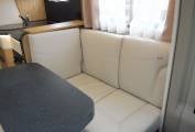 The lounge has a very comfortable feel to it, with cream furnishings and high gloss cabinets, there is plenty of room around the folding table for entertaining, or just kicking back and watching the television. The lounge seating can be transformed at night to accommodate a small double bed.
