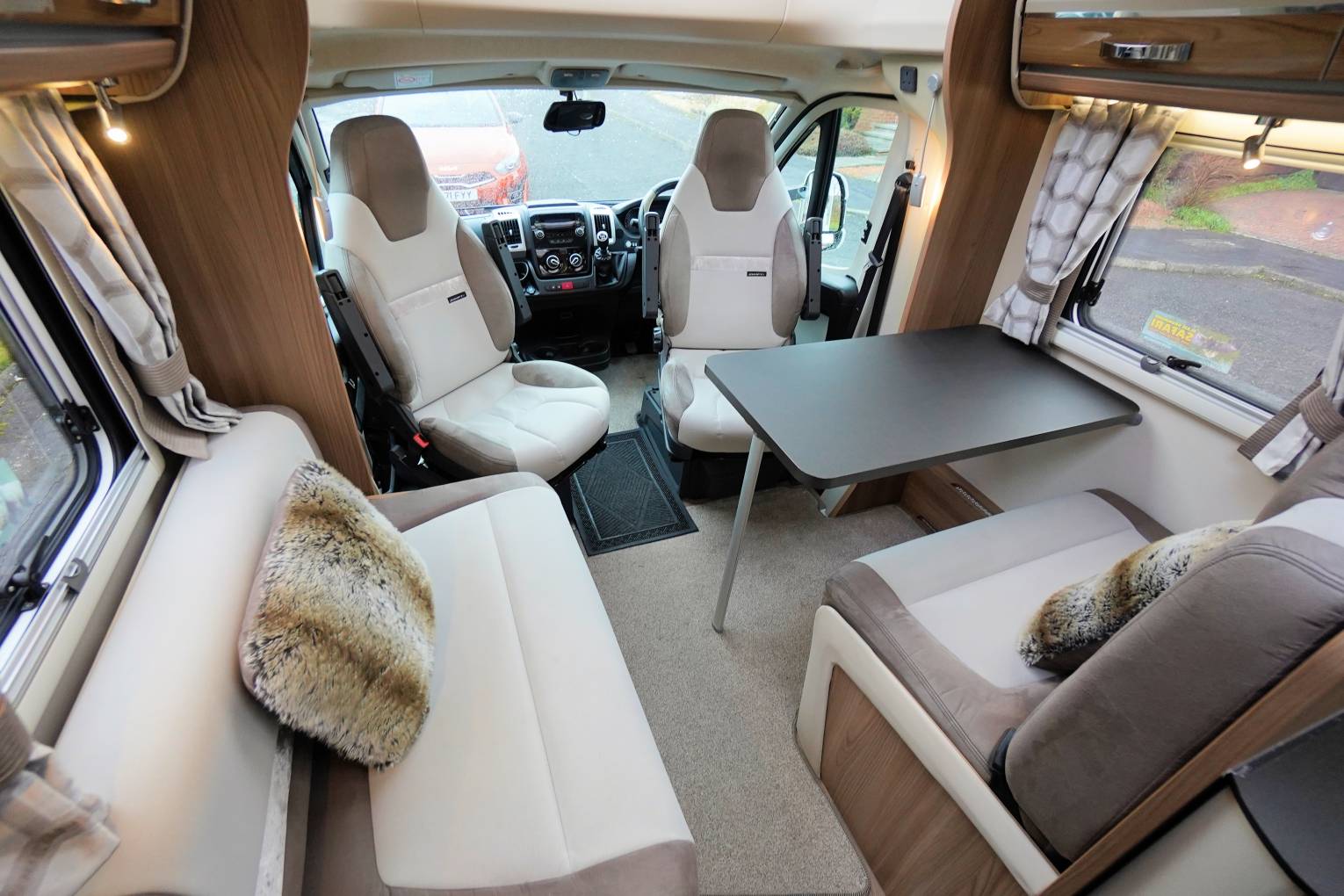 Based on a Fiat Ducato with 2.3 litre, 150hp, engine and 6-speed manual gearbox with air-conditioning, reversing camera, cruise-control, Bluetooth/hand-free phone, electric windows/mirrors and 16” alloy wheels.