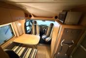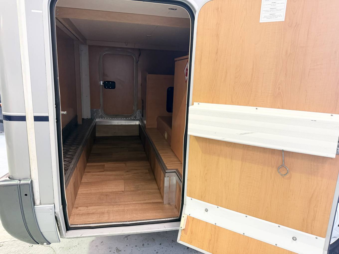 The large rear garage has plenty of storage space and is where the spare wheel and gas bottles are located. There is an awning light fitted above the entrance door and the electric entrance step is fully retractable.