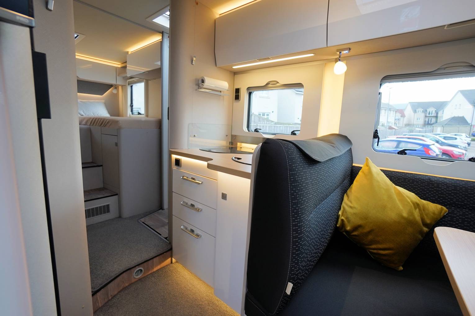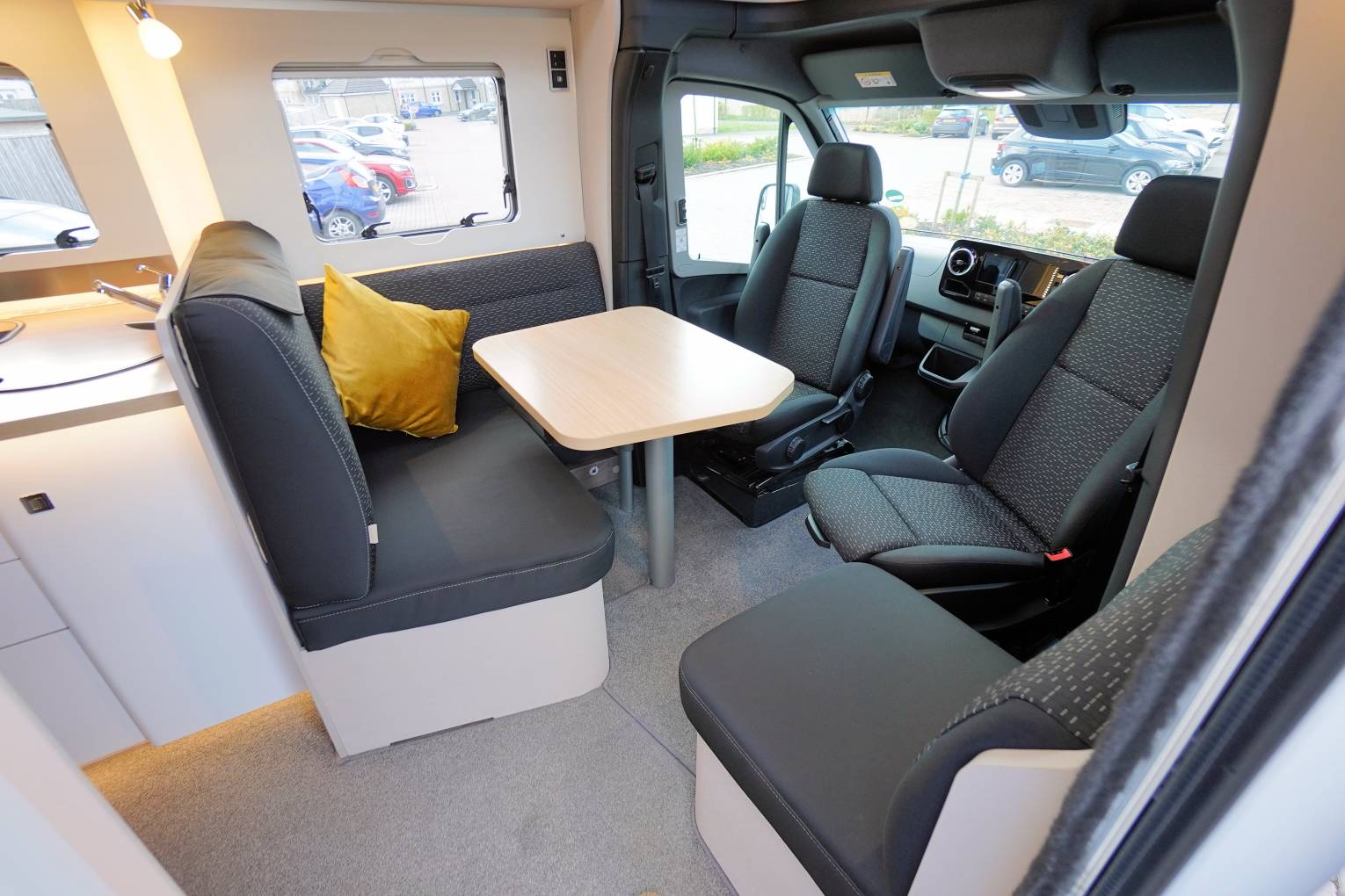 • L-shaped lounge area with adjustable dining table