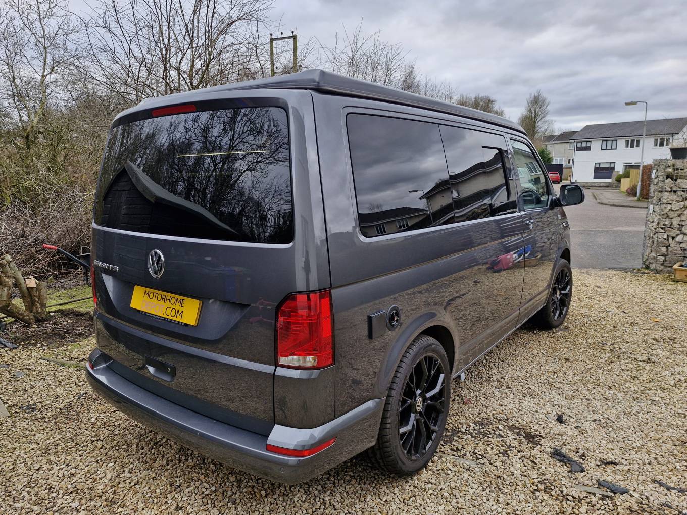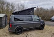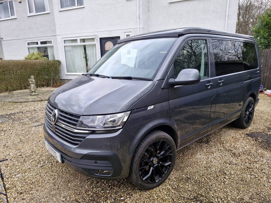 Motorhome Depot are delighted to present this professionally converted 2023 VW T6.1 Transporter Highline for sale. The vehicle looks very stylish in charcoal grey with contrasting black features, stunning black alloy wheels and light interior fitted out with 'as new' fixtures and fittings. The conversion was carried out by the highly respected Sherwood Campers and C&H pop tops in 2023. First MOT due March 2026.