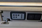 We also have 1 x 240v socket, 1 x USB port and a control panel that is used to operate the 12v lighting, water supply and battery. There is a 240v hook up, 12v battery and split charger.