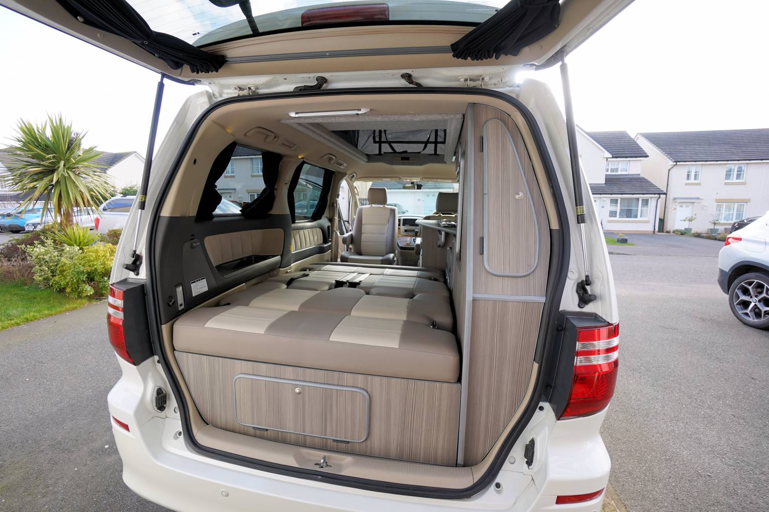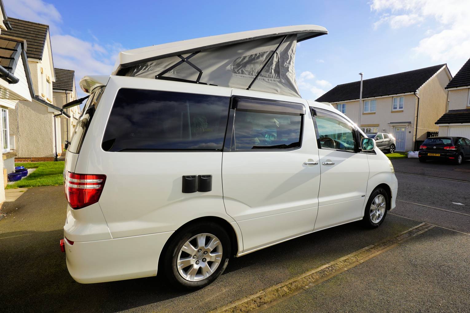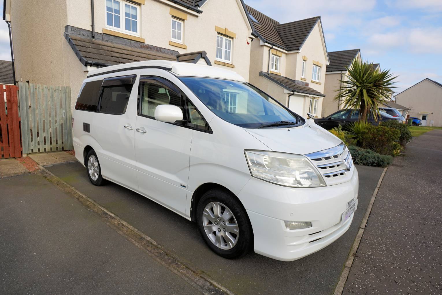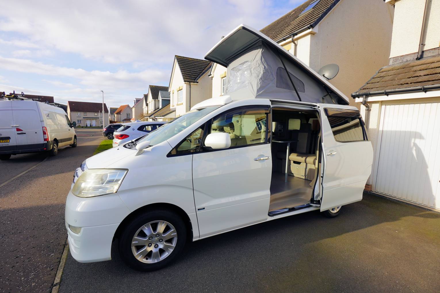 For sale we have a 2007 Toyota Alphard pop-top campervan with 4-berths and 4-seatbelts.