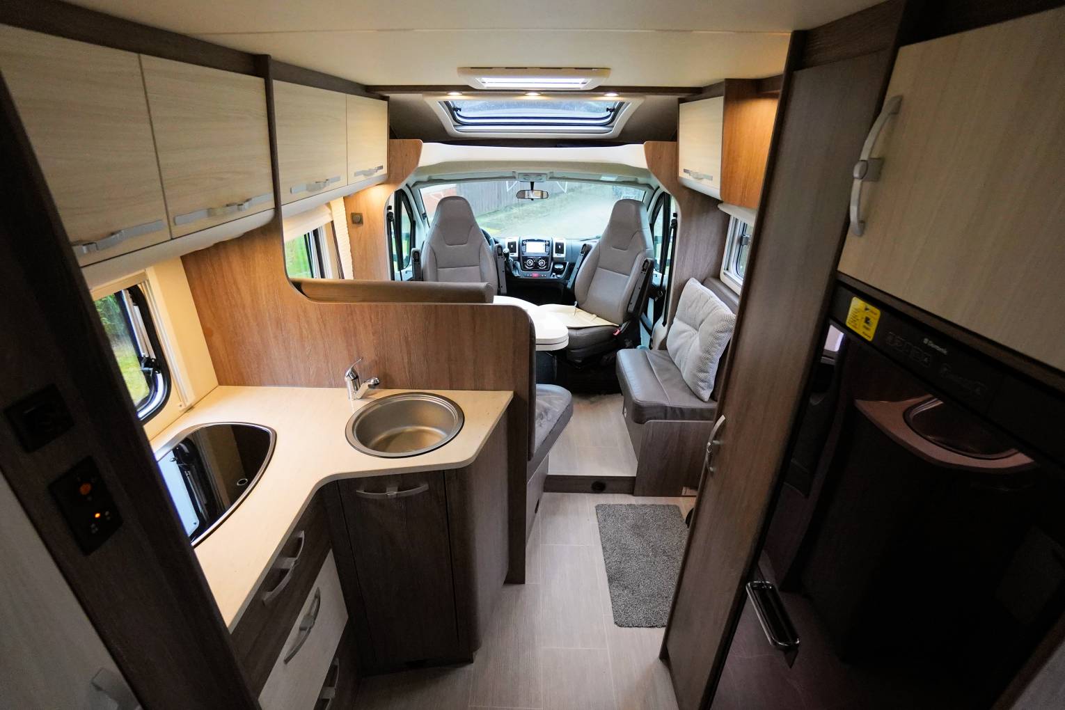 Based on a Fiat Ducato with a 2.3 litre, 130hp, Euro 6 engine and 6-speed manual gearbox with air-conditioning, reversing camera, sat-nav, cruise-control, Bluetooth/hand-free phone, electric windows/mirrors and 15” alloy wheels.