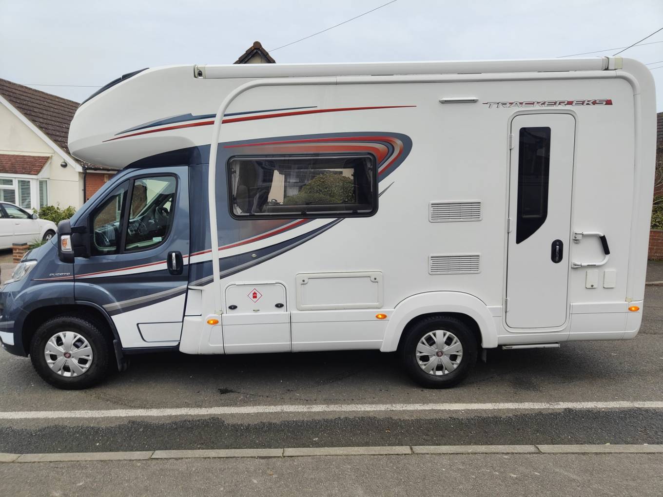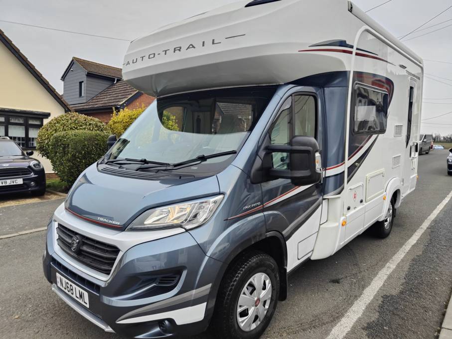 This is an outstanding example of the best selling Autotrail Tracker EKS. This low mileage 2 berth motorhome features a rear kitchen with 2 long benches to the front that utilise the 2 rotating Captains seats. With a well equipped corner bathroom with separate shower, this lovely little van is perfect for 2. Based on the excellent Fiat Ducato with a 2.3 jtd 130 bhp diesel engine with a 6 speed manual gearbox. This example includes an awning, reverse camera, solar panel, satnav and a Cobra cat 1 alarm. Near perfect condition and plated at 3500 kgs so can be driven by all. Registered nov 2018 and located in Kent. Recent Habcheck. More pictures available. Awaiting preparation.