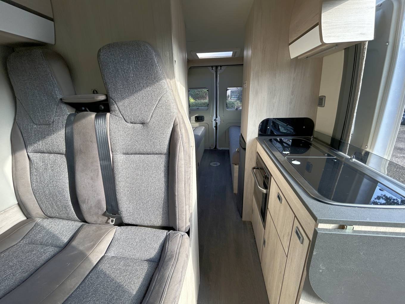 This gorgeous 2 berth Benivan 122 is visually very striking featuring eye-catching graphics and stylish black alloy wheels. The current owner has owned it from new and it has taken him on memorable trips through France, Spain, Portugal and even Morocco. It is based on the long wheelbase Fiat Ducato chassis so there is plenty of room inside for 2 people. But perhaps the star feature of the whole motorhome is the sensational Fiat 9 speed automatic gearbox which is silky smooth. Add in the fact that this Benivan has the powerful 160 bhp engine and cruise control and you can see why long drives are no issue at all.