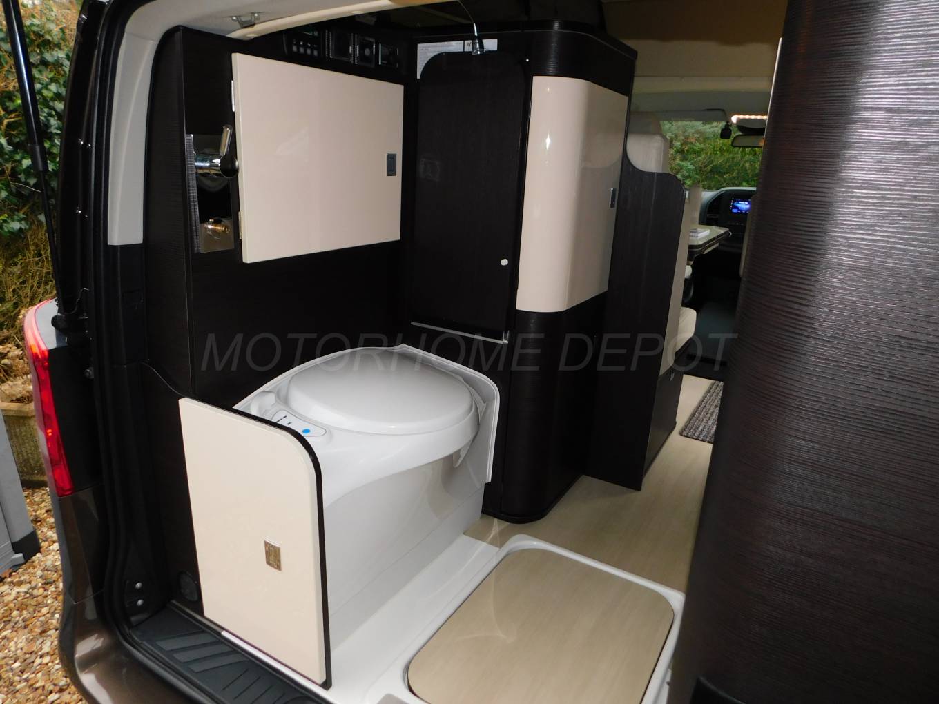 Thetford cassette toilet with electric flush. A wardrobe with hanging rail,