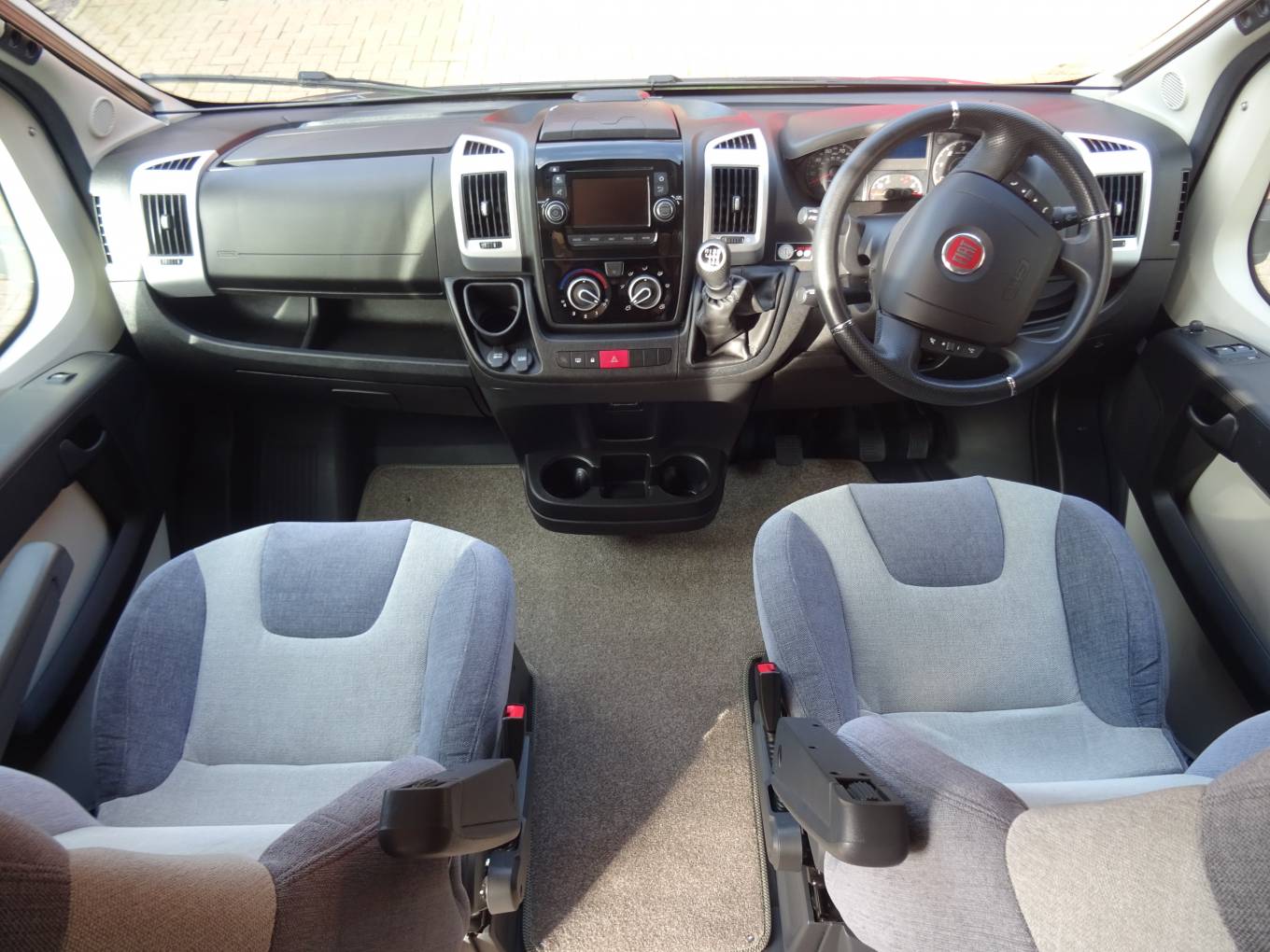 FEATURES: Truma Gas and Electric Hot Water and Heating - Blinds and Fly Screens throughout including the Hab Door - Over Head 2 Way Fan - Over Cab and Rear Sky Lights - Carpets - Good all round Storage - TV Point and Aerial - Solar Panel - Bike Rack - External Shower and BBQ Points - Thule Wind Out Awning - Alloy Wheels - Electrically Controlled Fresh and Waste Water Tanks.