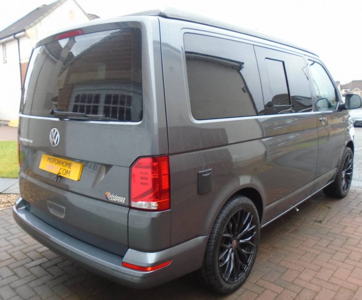 Motorhome Depot are delighted of have on board this immaculate and well presented VW Transporter T6.1 Highline, featuring all the high spec of the Highline range in the colour grey - conversion carried out to a high standard by Caledonian Campers. Why not make your first VW purchase through us as this vehicle is in an immaculate condition and just ready to be used on those great touring adventures and comes with almost a years MOT.