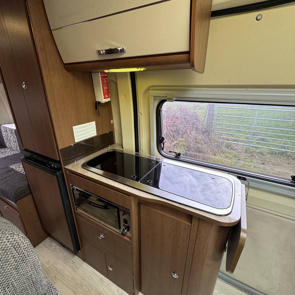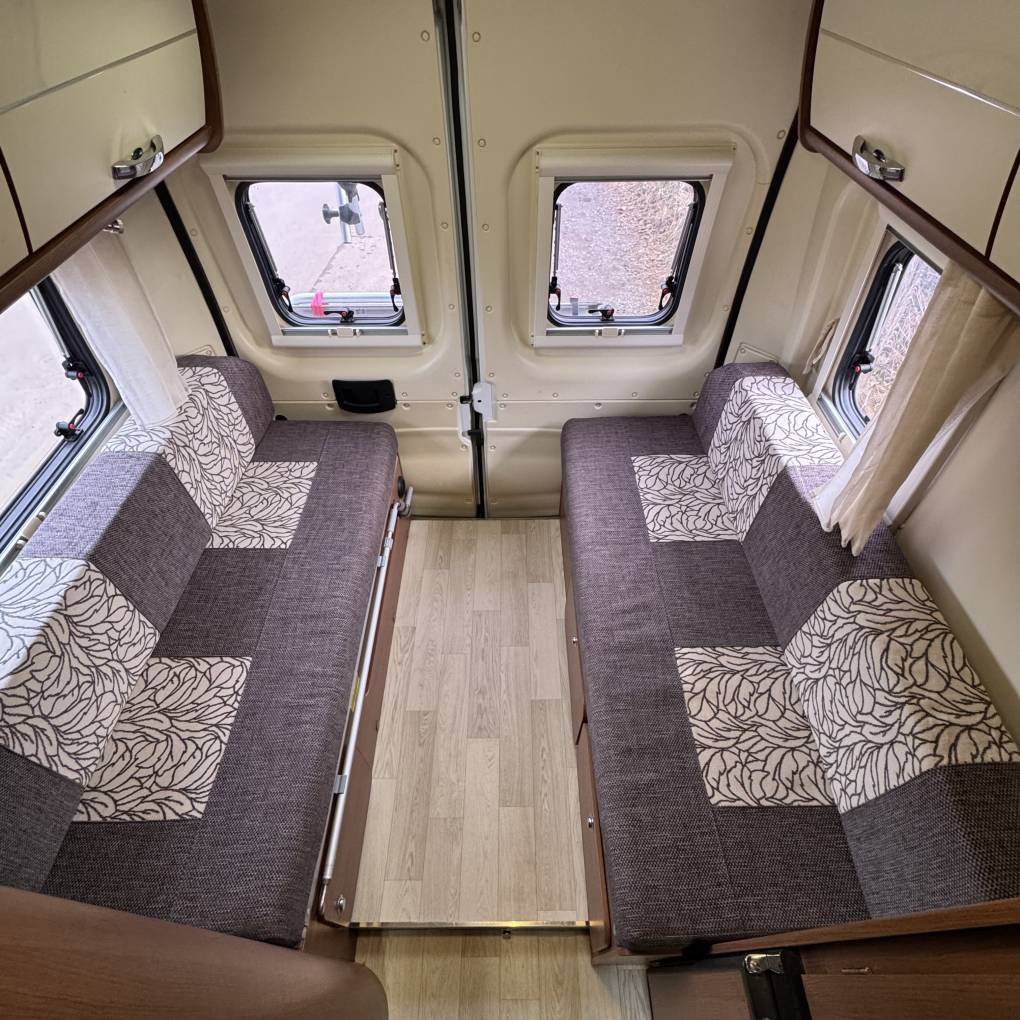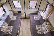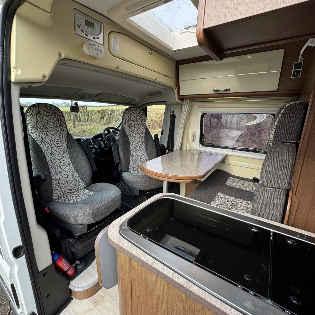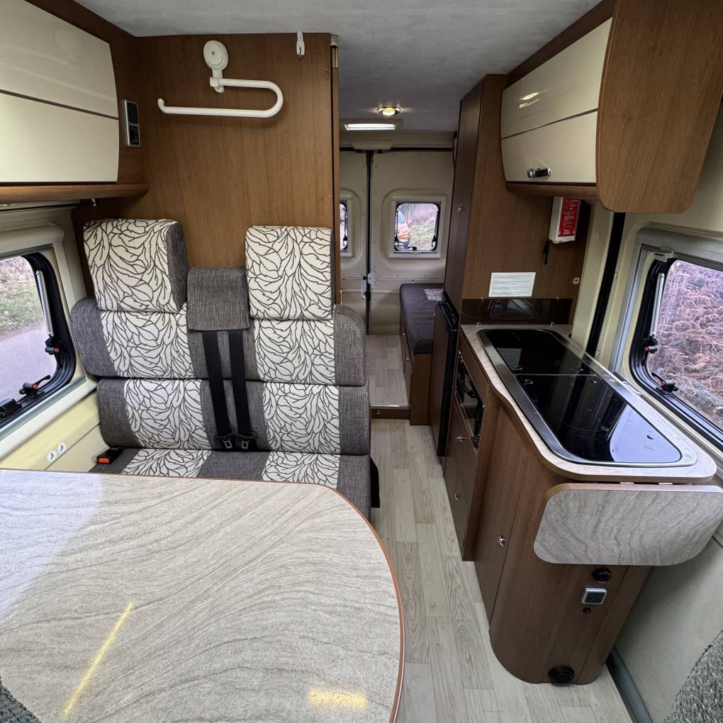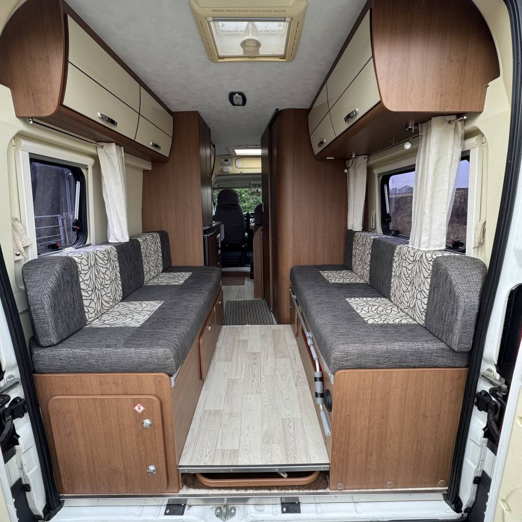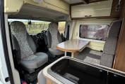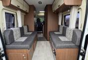 To the rear of this campervan you have you lounge area where there are 2 bench seats that also adapt into a good sized bed to cater for the 2 berths. Moving forwards you have your kitchen area which includes a fridge, sink with tap, grill and 2 way gas hob. Adjacent to this you have your washroom featuring a toilet cassette, sink with tap and shower. Finally moving into your 2nd living area you have a 2 seater dinette with 2 additional seatbelts therefore allowing 4 people to travel in total and also 2 swivel seats.