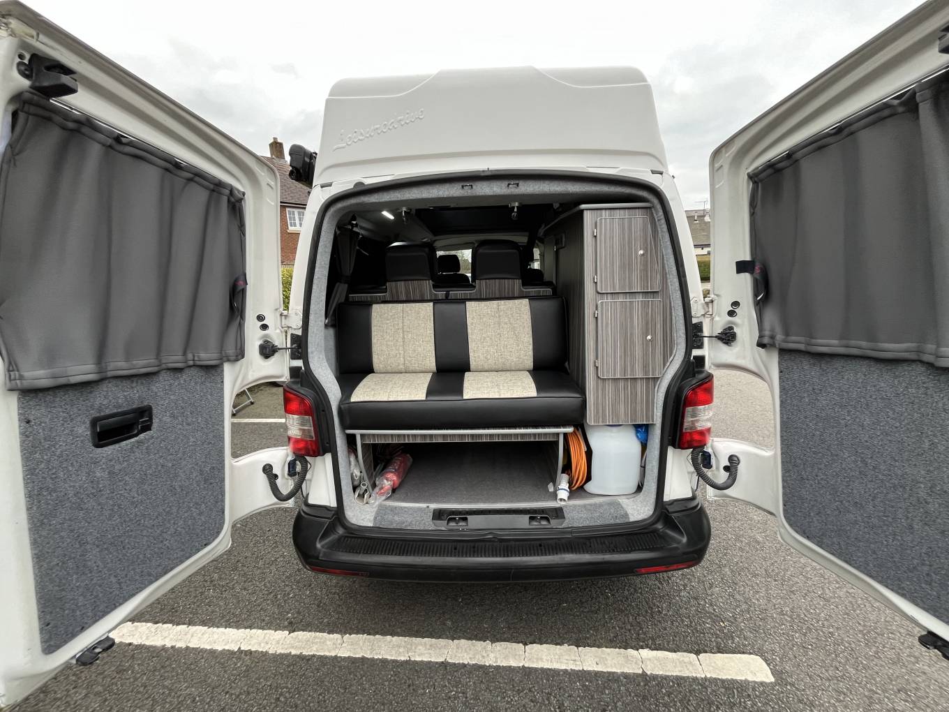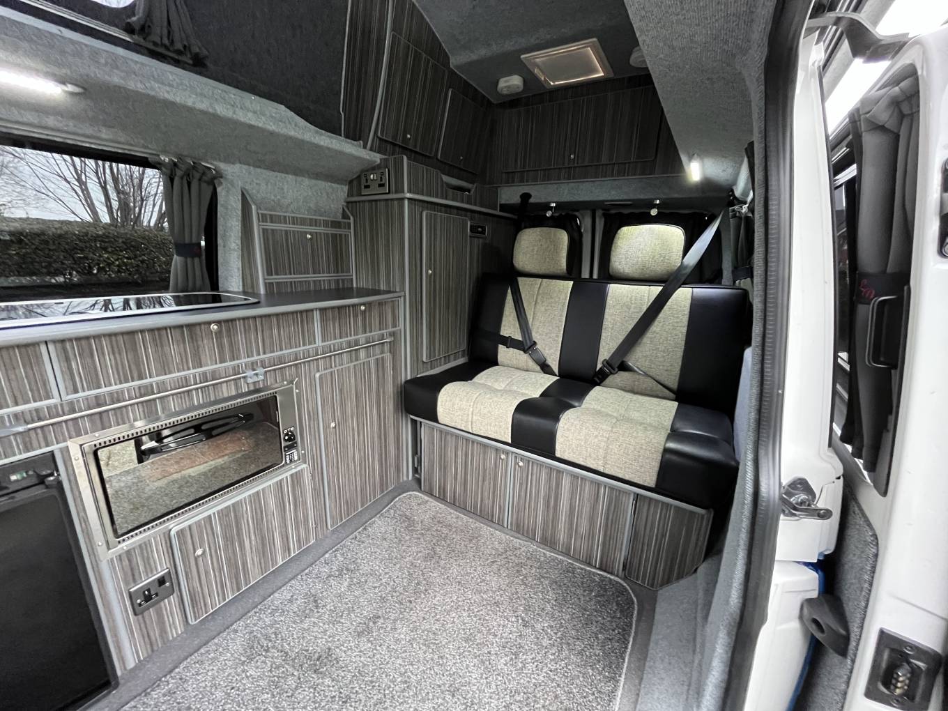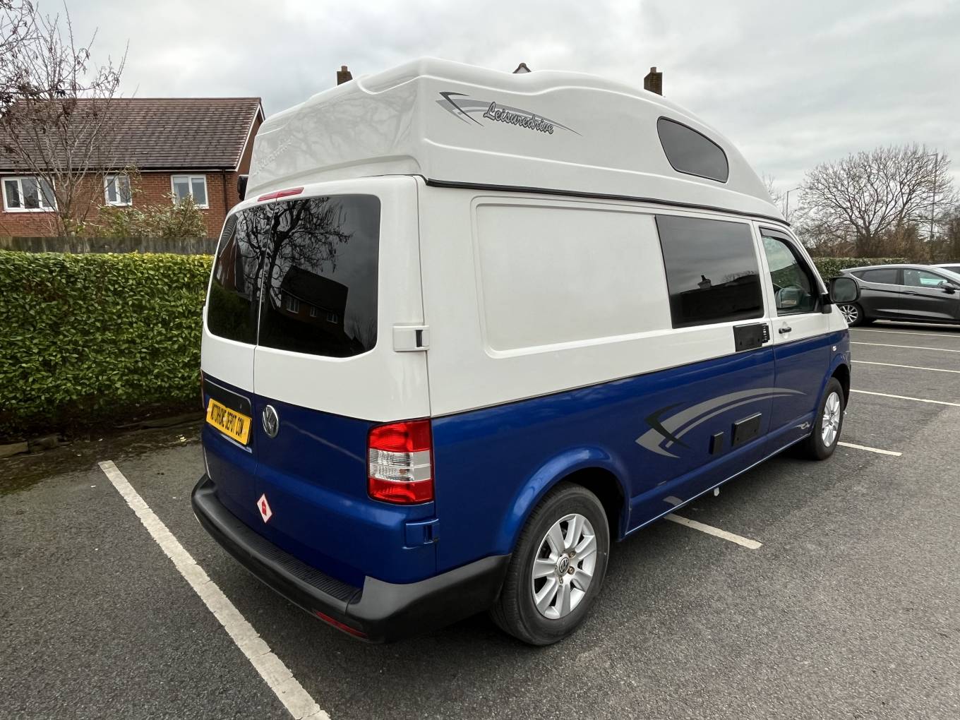 Leisuredrive Crusader LWB, 4 Berth, High Top Camper. This van is in excellent condition and is well maitained, including new cam belt and water pump and has one previous owner. It has been professionally converted by Leisurdrive and is beautifully finished to their usual high standard. The high top gives good headroom and also provides space for additional sleeping for 2 people. The kitchen has a 3 way fridge, hob, grill and oven, at the rear is the rock and roll bed and at the front the pasenger seat swivels. It comes with 4 seat belts, Cab Air Con, Immobiliser, Rear Camera, Alloy Wheels, Canopy Awning, Gas Bottle, Mains Laed, Porta Potti, Silver Screens and 2 sets of keys. An excellent example, available for viewing by appointment in Southport, call for more photos, videos and information.