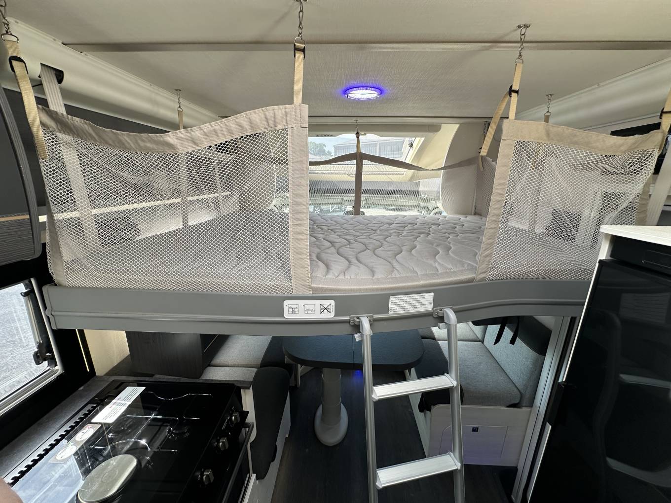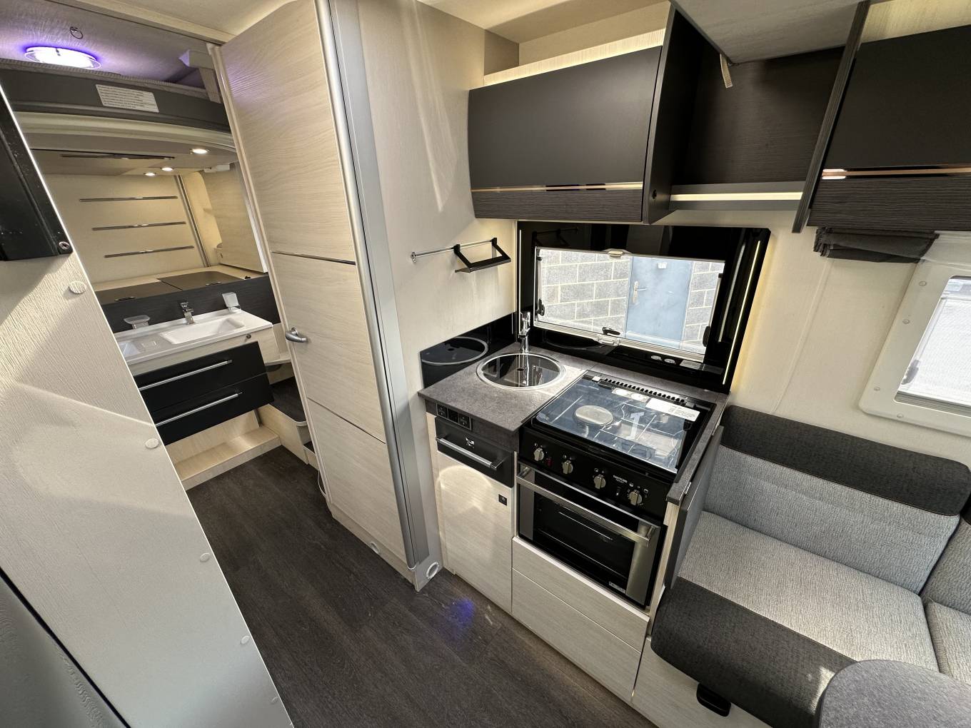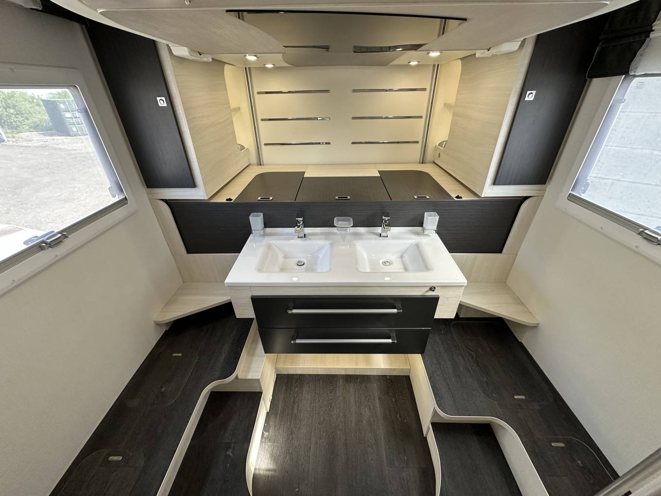 The Chausson 778 Premium is completely unique, innovative and refreshingly different. This 4 berth Motorhome has 2 drop-down hideaway double beds, one located at the front and the other at the rear. There is a forward smart lounge and the rear washroom has two sinks that retract electrically when not required, which enables the rear bed to come all the way down.• 4 Travel seats