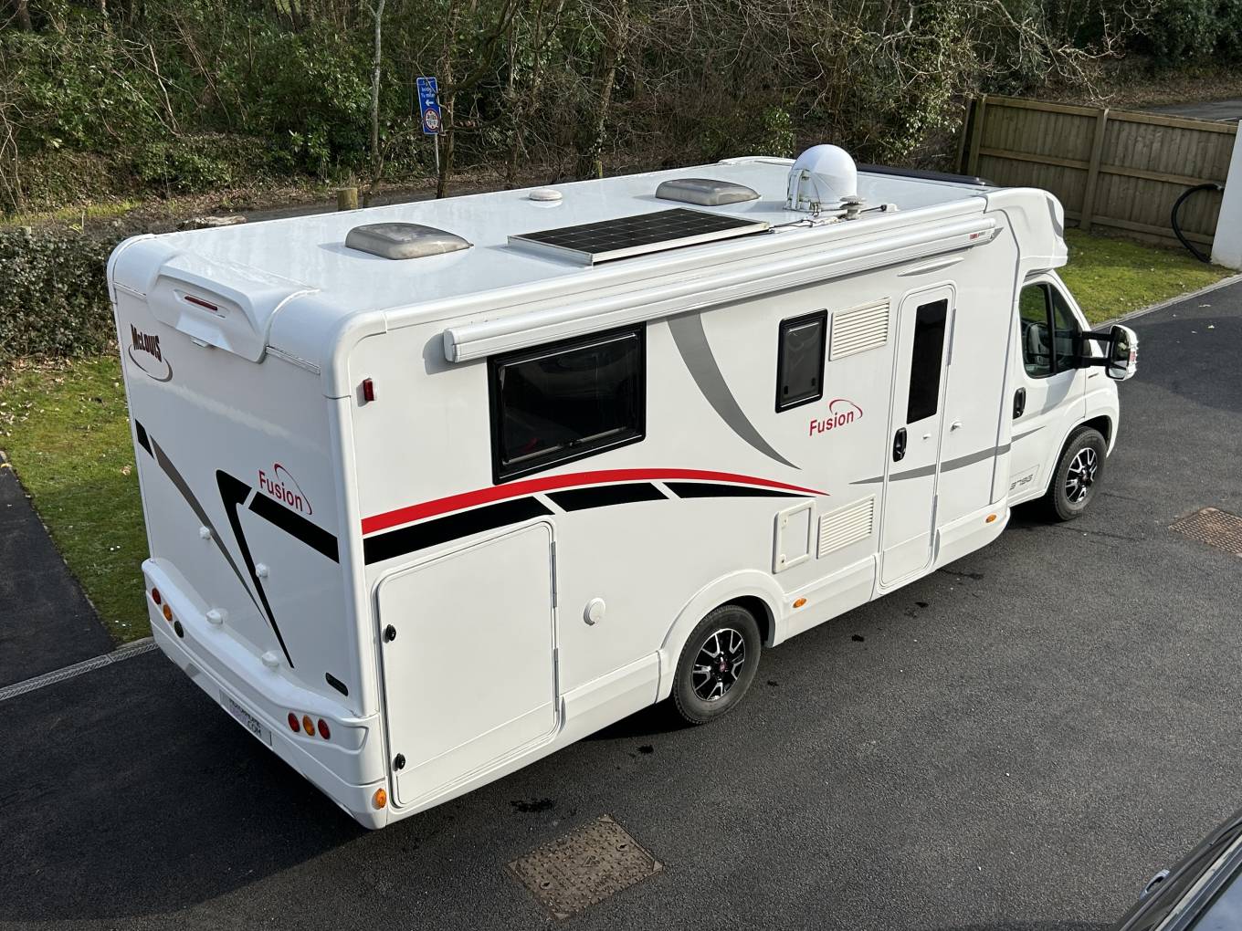 The Fusion 379G is loaded with extras which include but not limited to, Cab Air Con, Large Wind Out Canopy, TV and Satellite System, Reversing Camera, Cruise Control, Solar Panel, Gas Bottle, Hook Up Cable, Factory Fitted Cab and Habitation Blackout Blinds and Flyscreens for the Habitation Windows, 2 Sets of Keys, Diamond Cut Alloys, Electric Windows and Mirrors, Media Centre with Phone Connect, Bluetooth, USB points and more!
