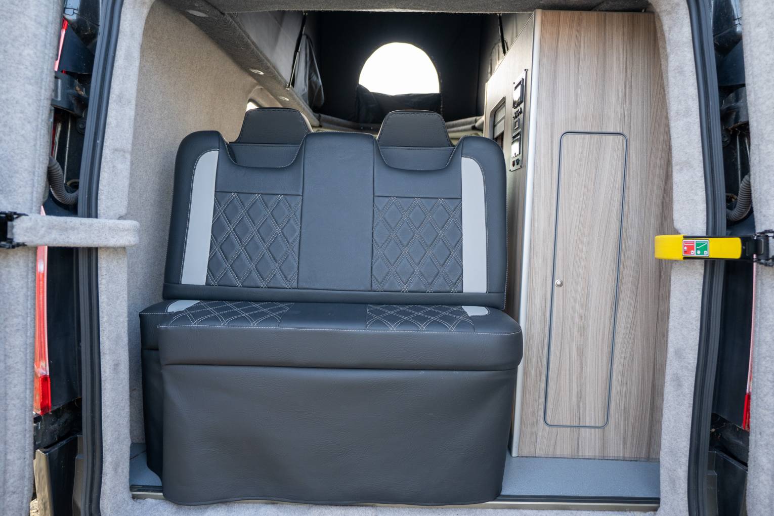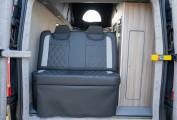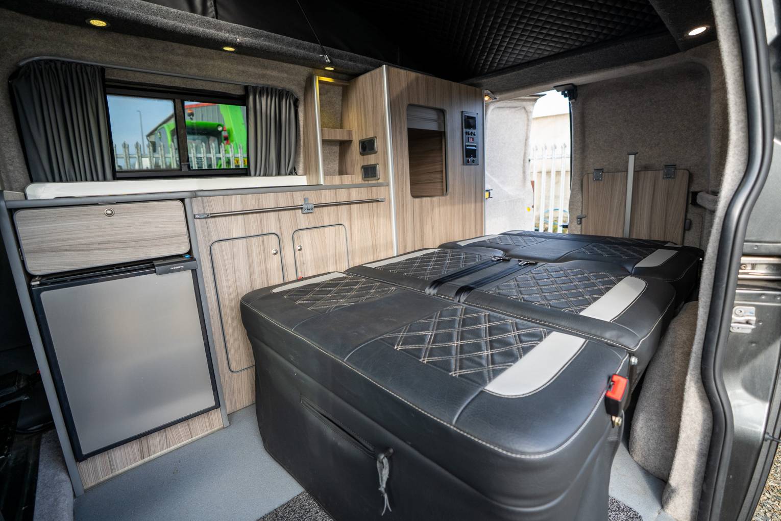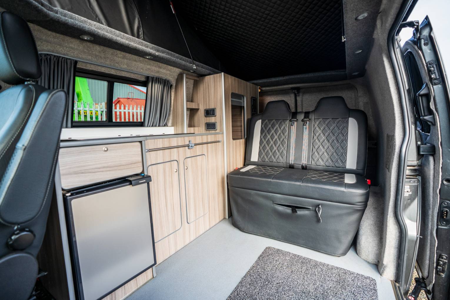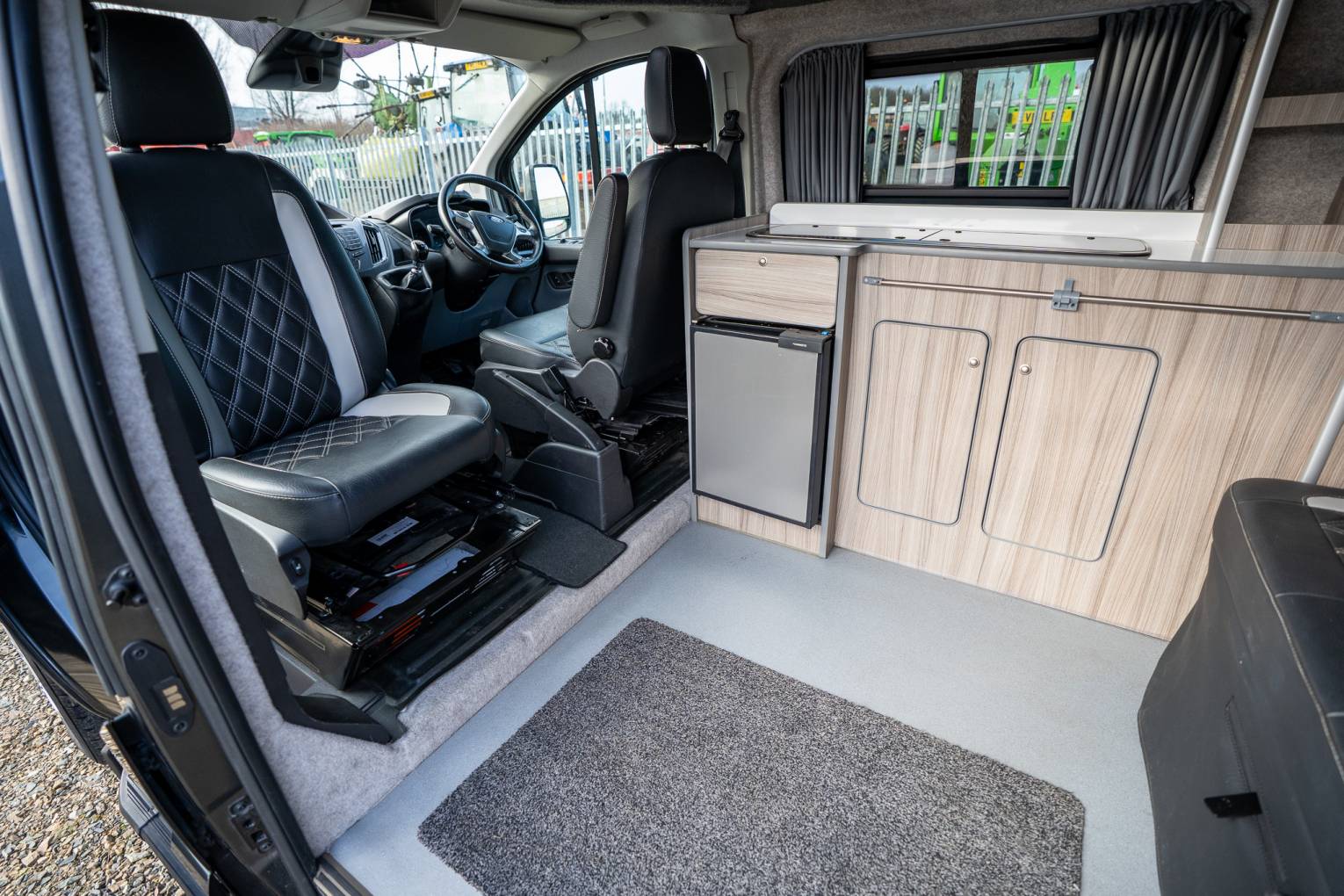 This vehicle is a rare find and boasts quality and class throughout. Complete with 4 Berth and 4 Belts, the conversion has been done to a high spec with an M1 Tested Rock and Roll Bed, Magnetic Grey Pop Top Roof, bespoke Oak-effect cabinets, Diamond Stitch seating and Dometic Fridge and Hob. Throughout this vehicle there is an unusual abundance of space compared with your standard pop tops. The bespoke use of cabinets and cupboards on the drivers side, means you have additional slots for anything from luggage, camping equipment, crockery or your favourite tipple to keep you warm on those colder nights away. The fridge comes with a separate compartment for freezer goods, whilst there is a SMEV hob and sink area so you can cook your favourite meals wherever your adventures may take you. When its time for bed the Rock & Roll Bed quickly collapses to give enough space for two adults, whilst the pop top roof extends for that additional sleeping space upstairs. The vehicle itself runs on the Ford 2.0L engine and is EURO 6/ULEZ Compliant. It has been meticulously looked after, with 3 owners from new and a great service history.