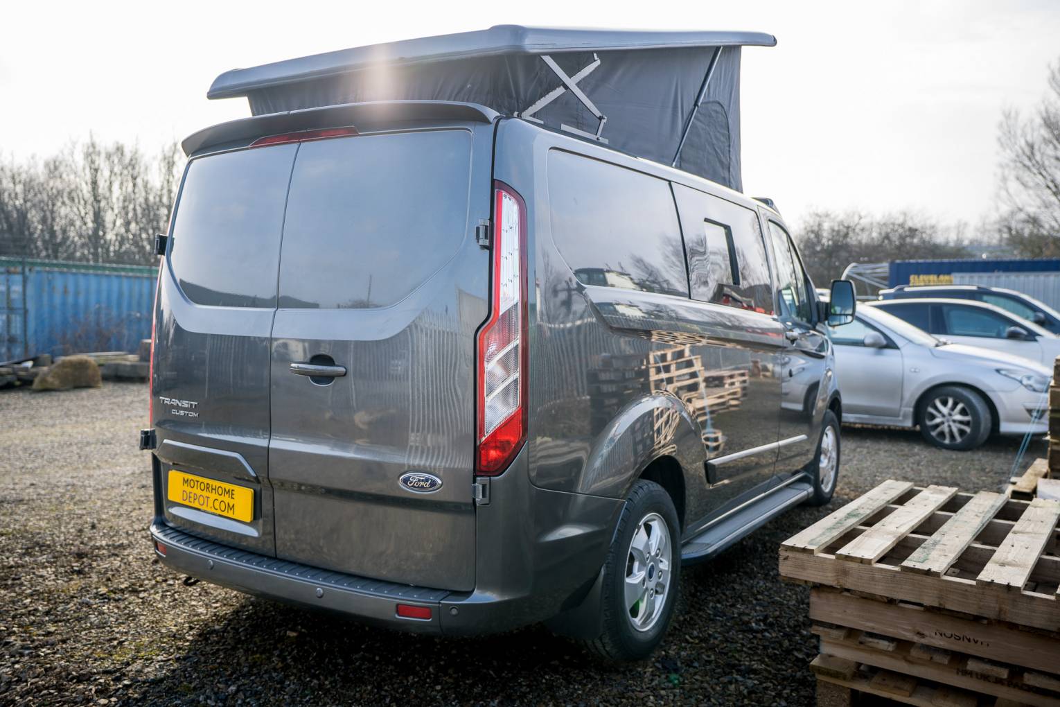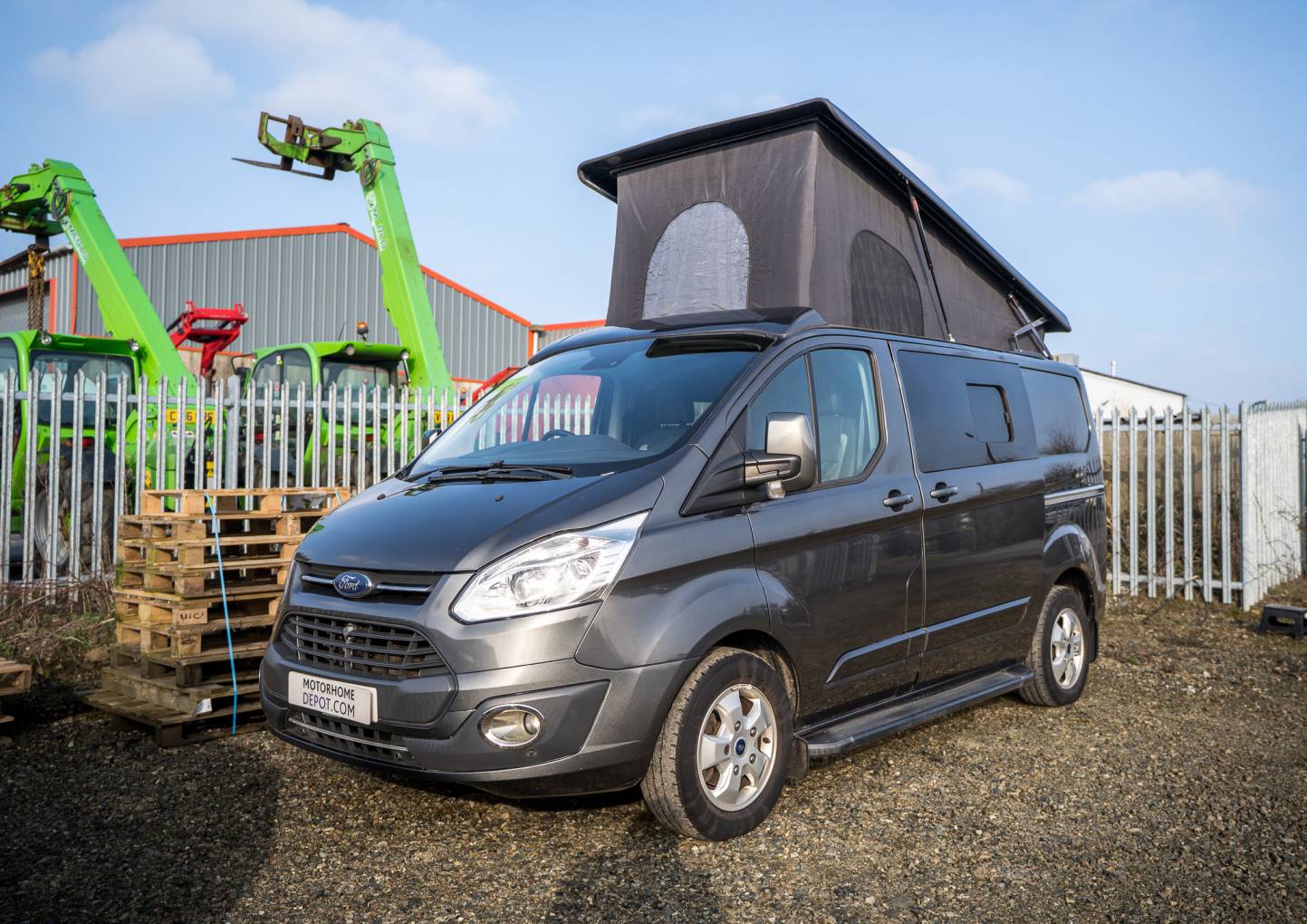 Motorhome Depot Swansea are pleased to present this Ford Transit 2.0 Pop Top Conversion. Driveable on a Standard UK Car License and EURO 6/ULEZ Compliant. Comes Complete with everything you need to get on the road - Including an M1 Tested Rock and Roll Bed, Pop Top Roof and Dometic Fridge and Hob.