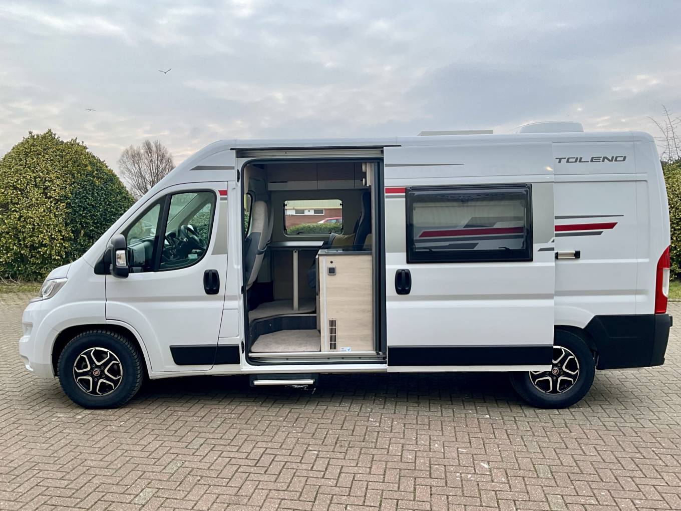 As you step inside the Toleno R, you are greeted by the spacious lounge that can comfortably seat four when the two captains' chairs are swivelled. The area is cleverly lit by LED lights throughout and has 240v plug sockets and USB points. The Toleno is heated by the ever popular and efficient Truma system.