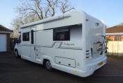 Fiamma wind out awning, gas locker with two bottles, external mains socket, side locker access to under bed storage, external BBQ point and mains hook up point.