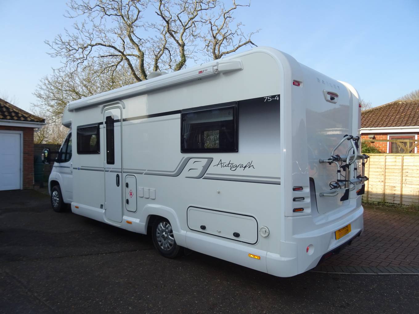 Motorhome Depot Norwich are pleased to offer this 2019 Bailey Autograph 75-4 Luxury 4 Berth. 4 Seat Belts with only 4,745 miles low profile motorhome with the much sort after rear fixed french double bed layout. Owned from new and located in the Norwich area. Based on the Peugeot with 2.0 diesel engine, combined with a 6 speed manual gearbox. Latest habitation report completed on 20/06/2025