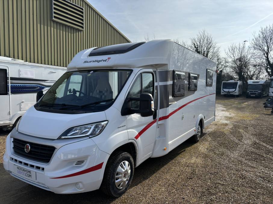 Motorhome Depot Letchworth are proud to present this 2019 Sunlight T68, 4 berth / 4 seat belt motorhome. Built on the popular Fiat Ducato chassis and powered by a 2.3l 130bhp manual engine, this motorhome has only had 2 previous owners with only 26,886 miles on the clock. Measuring at 7.4m in length and weighing only 3.5tons, this motorhome can be driven on a standard UK license.