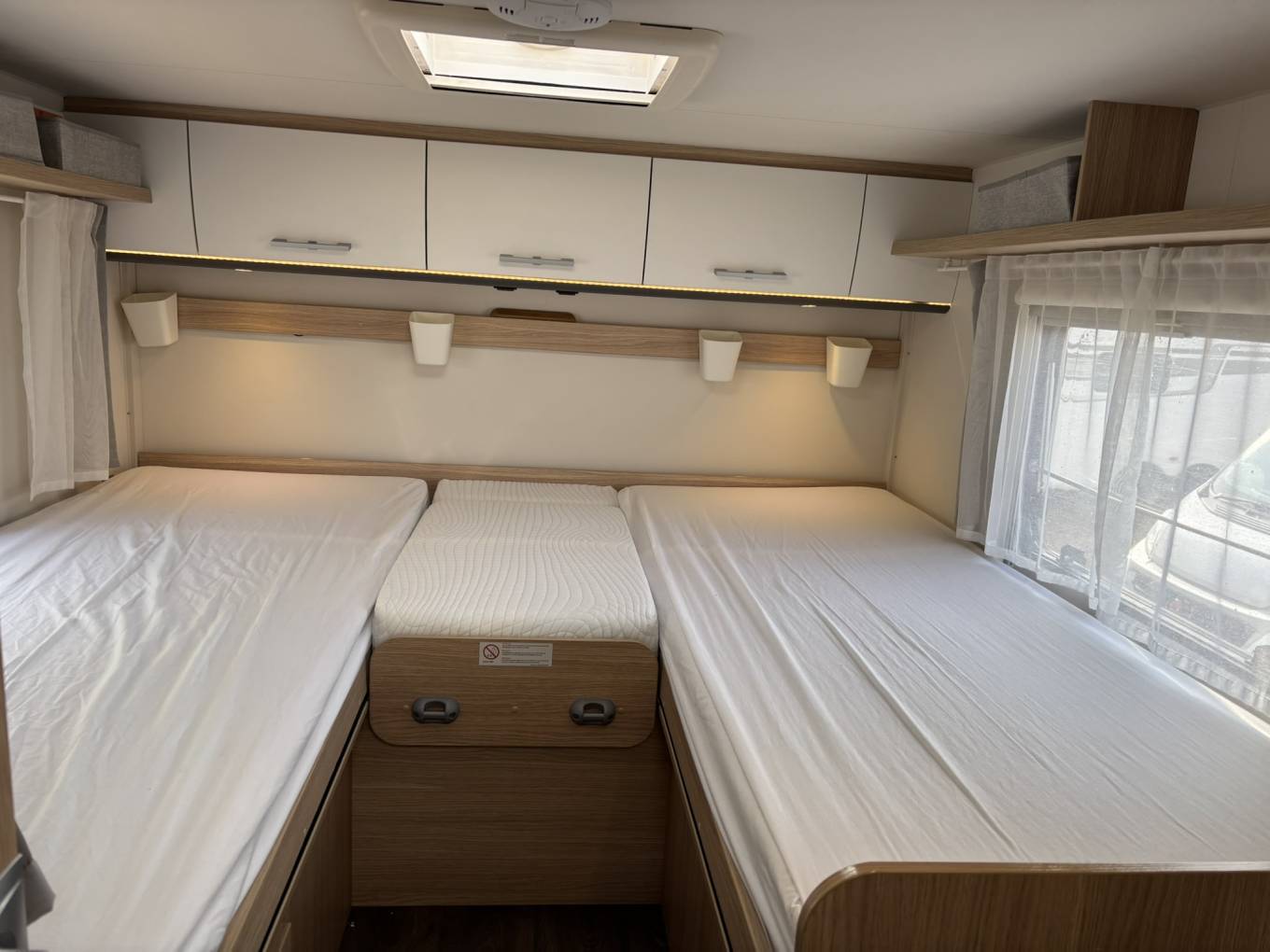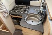 The layout has been designed to maximise living space with a spacious dining area located just behind the front cab. This motorhome also benefits from a rear fixed bed which can be split into two single beds or extended into a large double bed. The drop down double bed in the centre turns into a 4 berth motorhome but may even have enough space for 5 people with how large the rear fixed bed is when extended out.