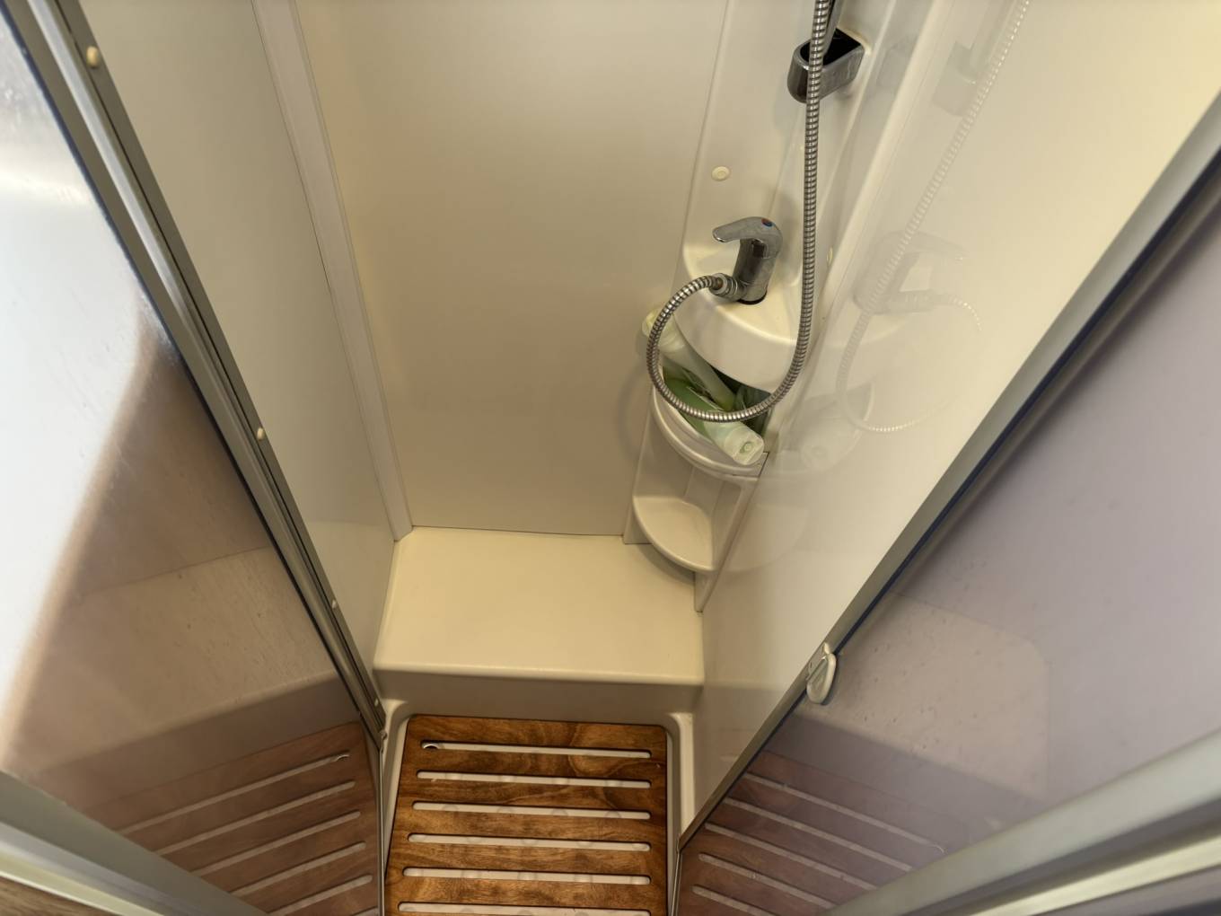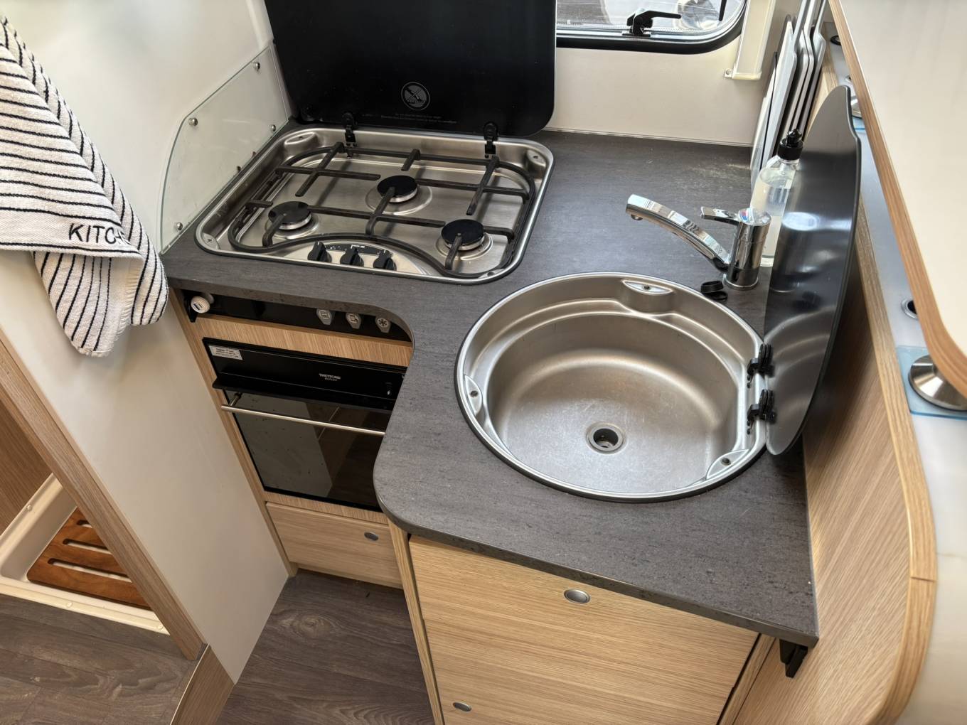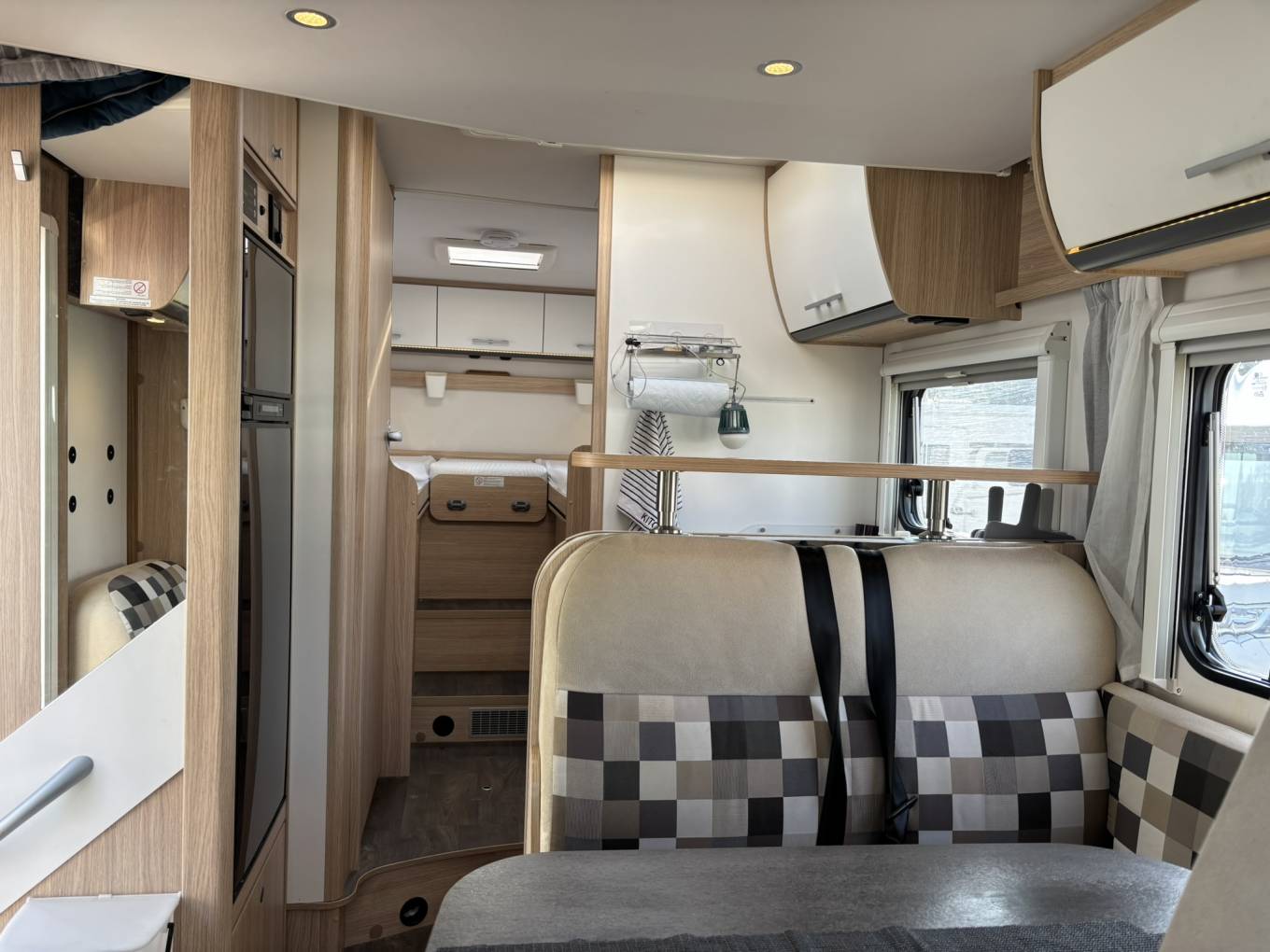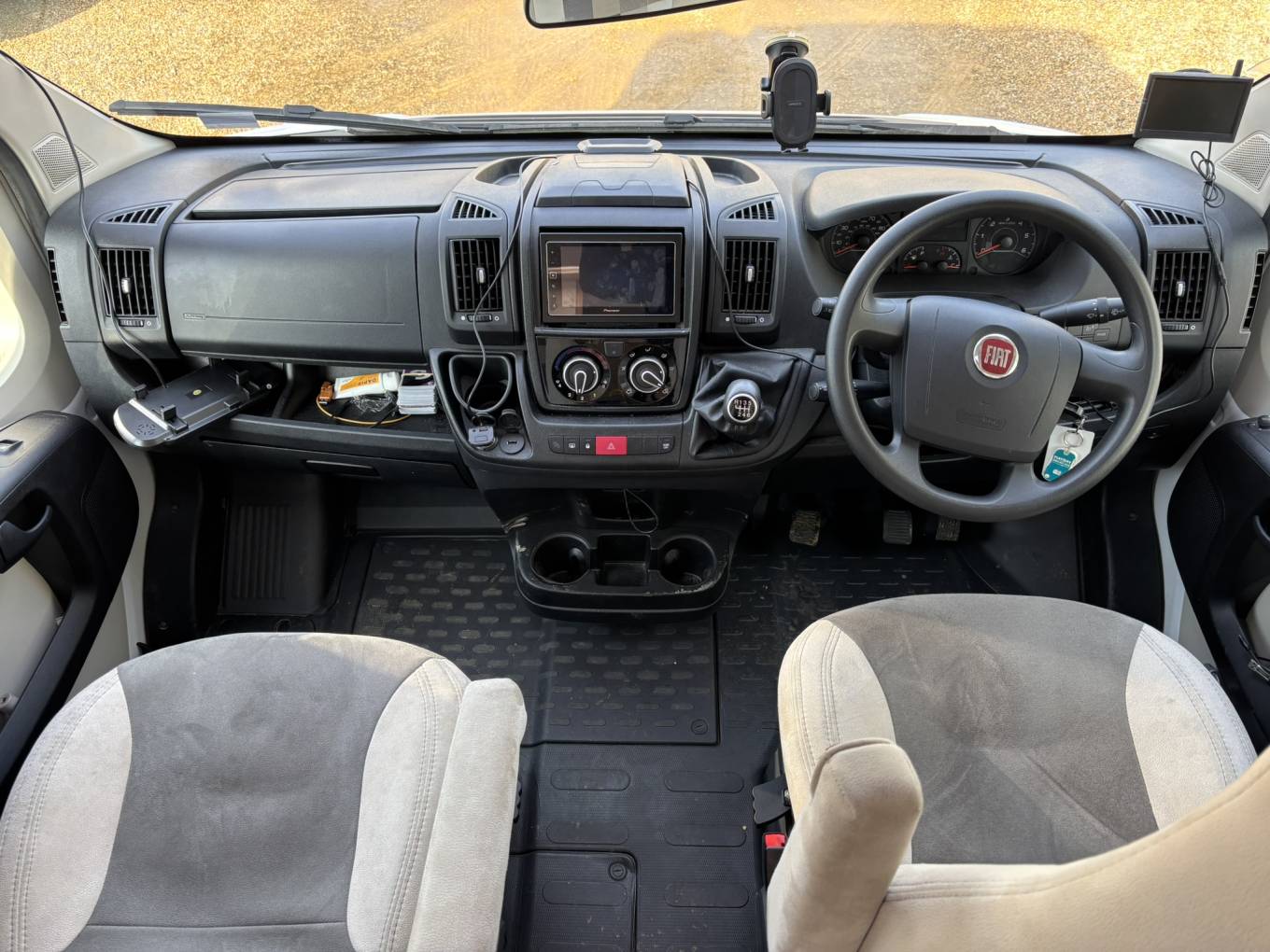 The kitchen area is located in the centre and is fully equipped with a Thetford oven/grill, Thetford fridge/freezer, 3 ring burner hob and a sink/tap area. The shower is a real stand out as the shower cubicle is separated from the washroom. Plenty of storage options throughout the motorhome and a full sized rear garage going through the width of the motorhome (110cm high and 94cm wide internally). An alarm, immobilizer and tracker has also been fitted to give you extra peace of mind and will save money on insurance!