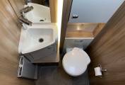 door is a washbasin with a chrome mixer tap, Thetford cassette swivelling