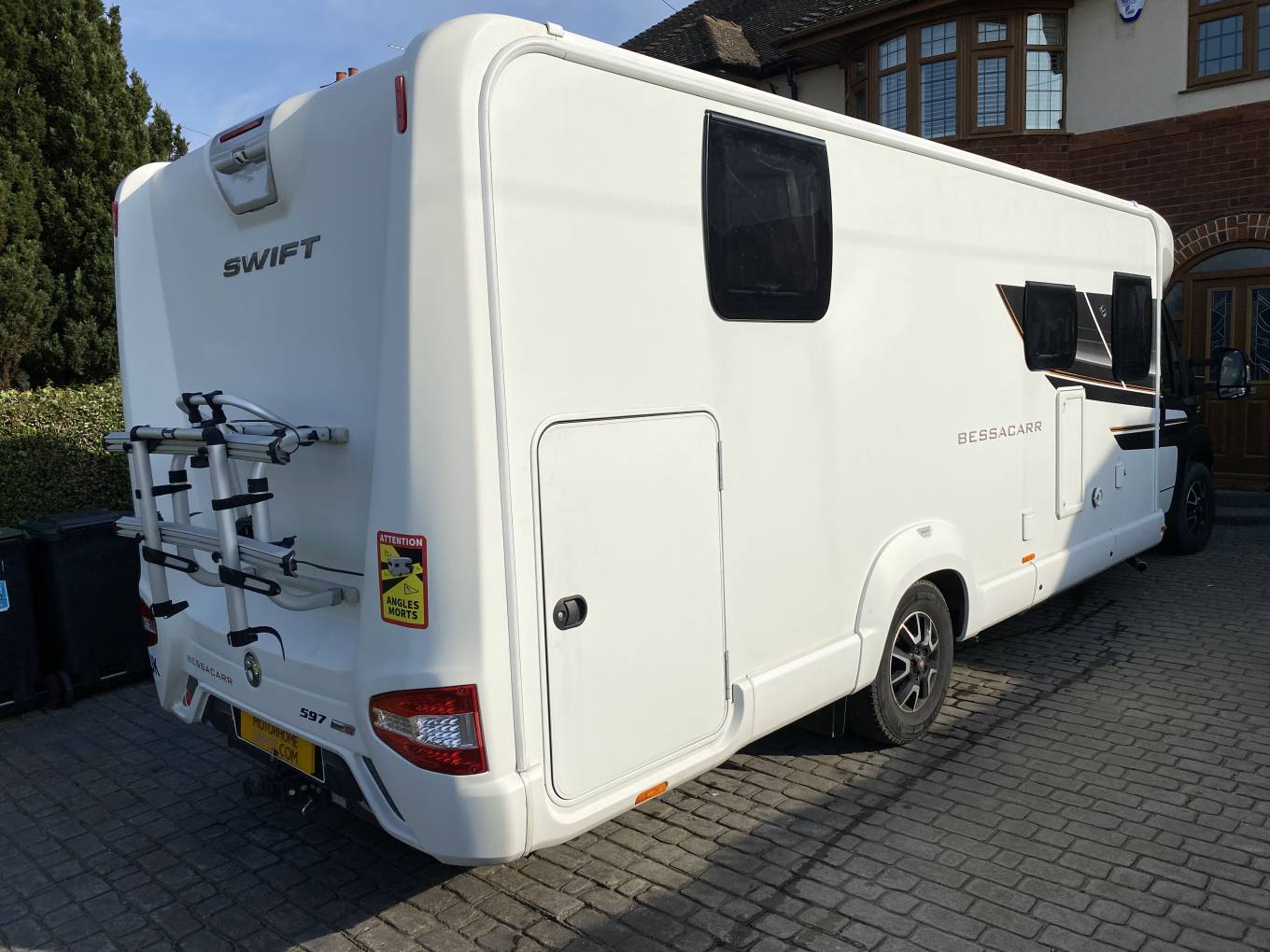 Outside there is a Thule two bike cycle rack, solar panel, dual aspect reversing