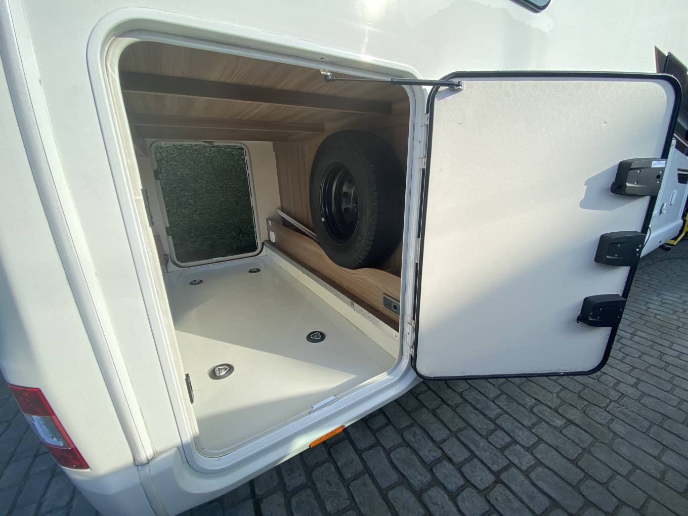 awning, awning light, gas locker with space for two bottles, spare wheel,