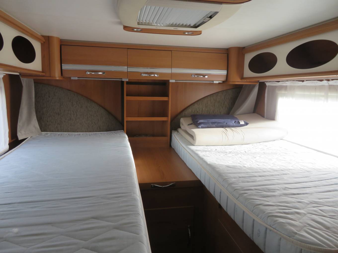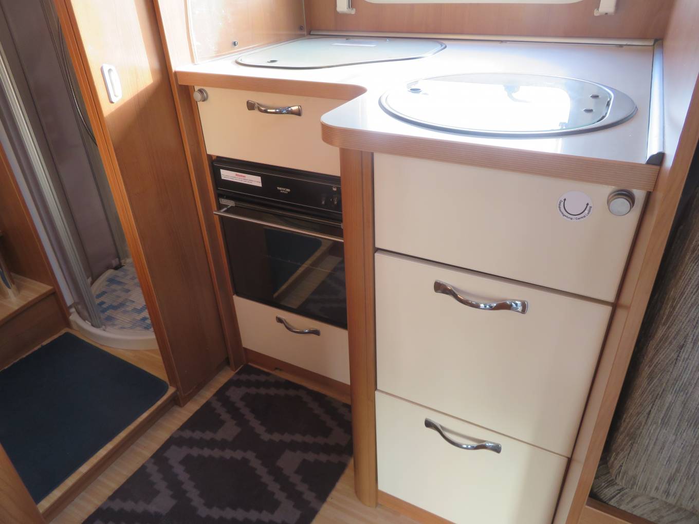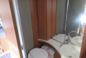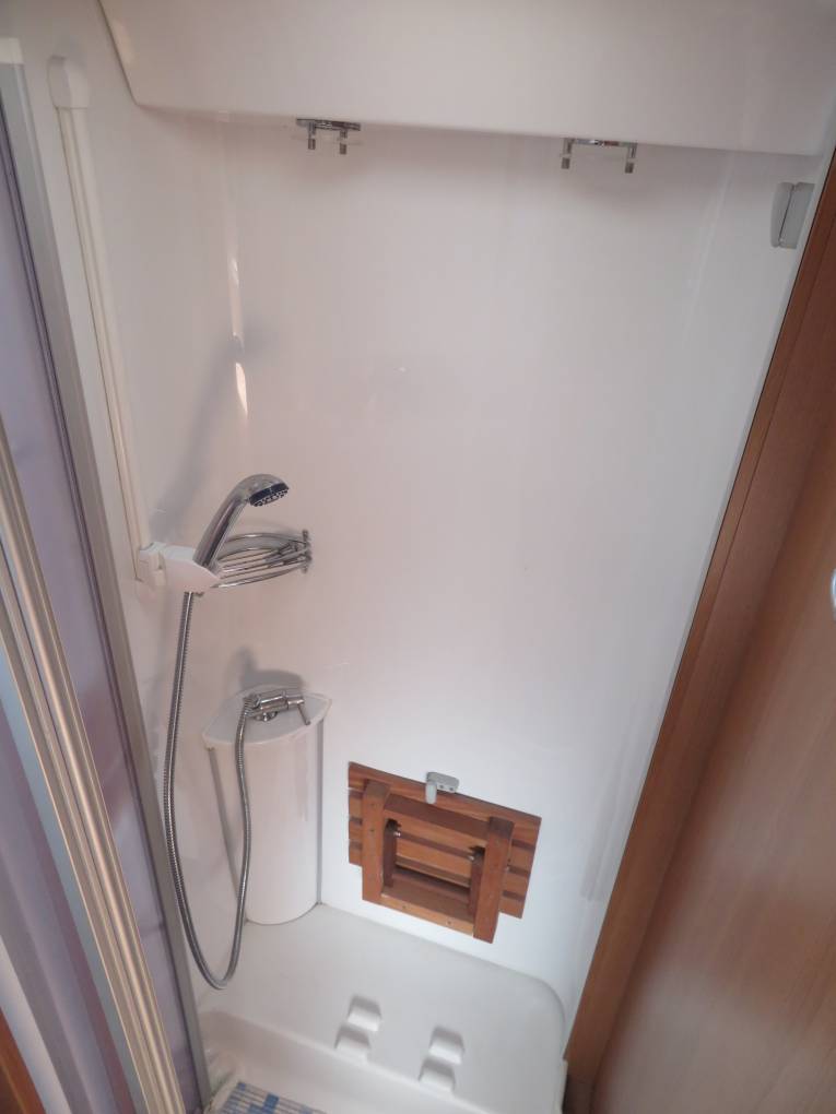 The main advantages of this garage, fixed bed motorhome are the size of the garage which will fit 2 scooters or mopeds, the open plan front lounge incorporating swivel seats, the modern fixtures and fittings as well as good sized bathroom and Separate Shower The kitchen is well equipped with Hob, sink, Oven, lots of storage options and fridge/freezer.