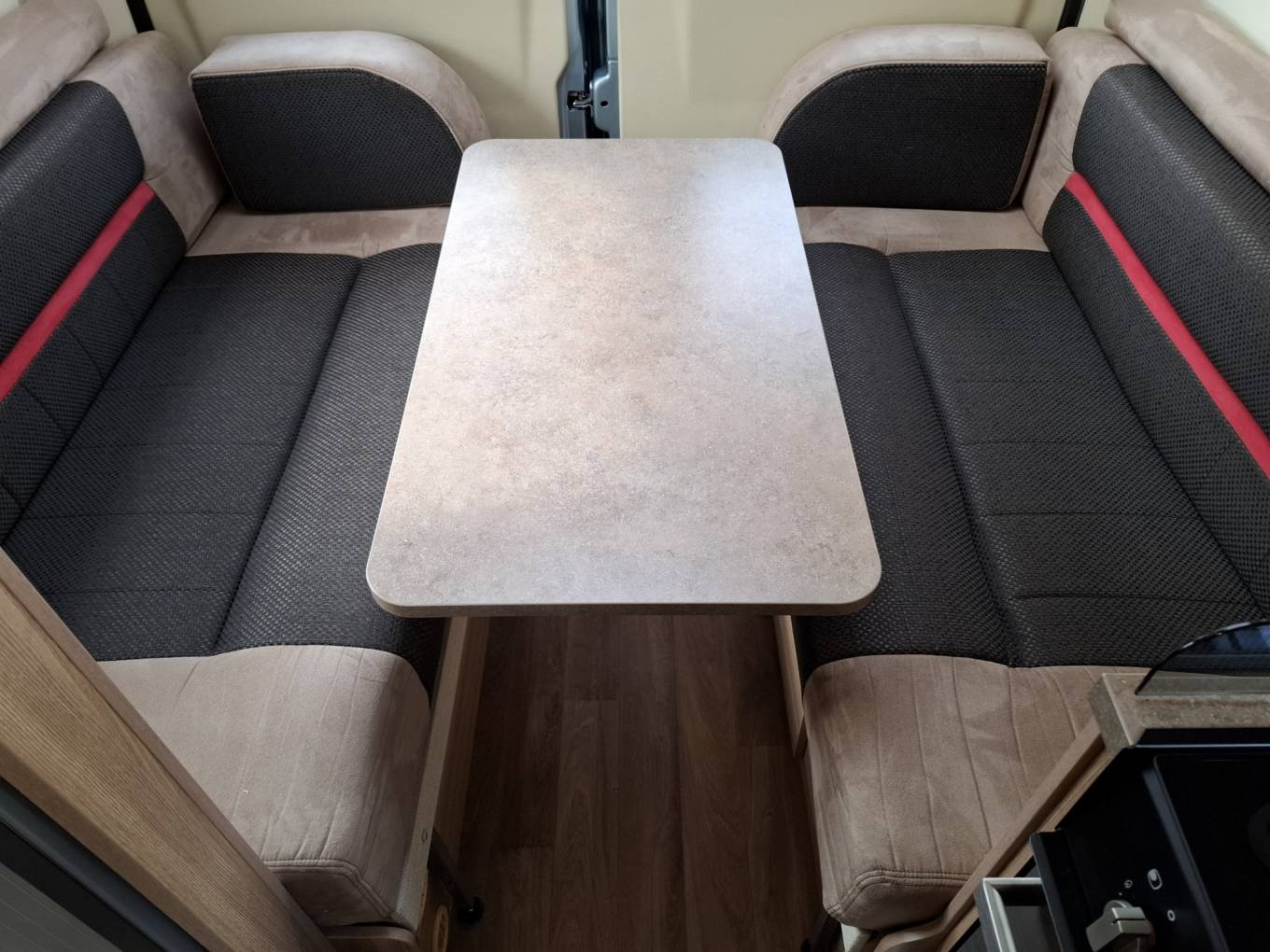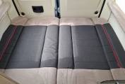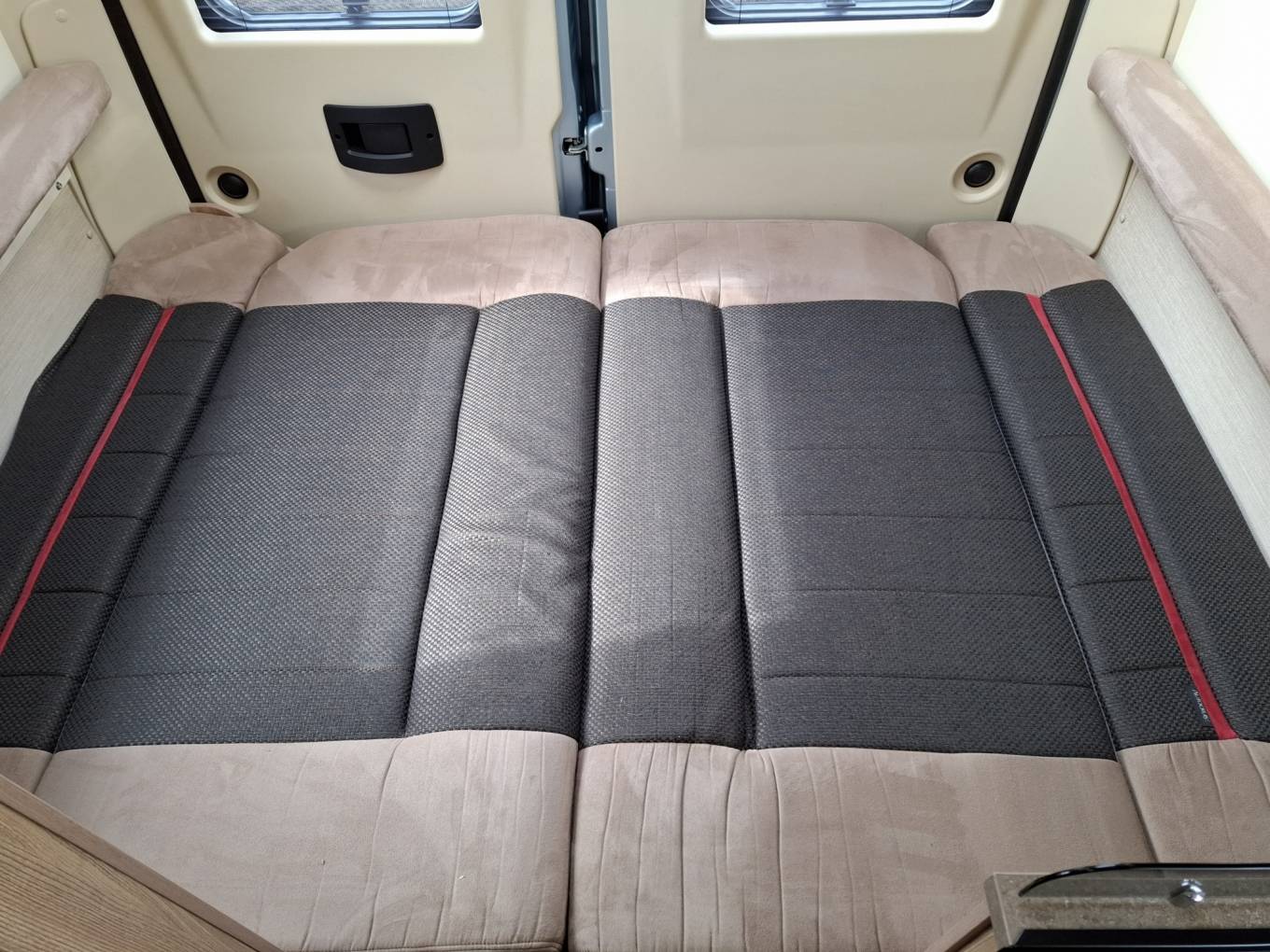 This seating can be readily converted into a tranverse double berth which is 180cm (L; across the vehicle) x 132cm (W).