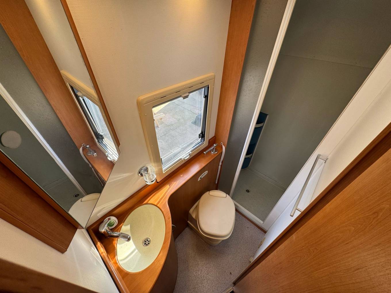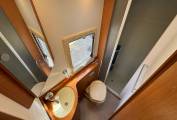 For sleeping, the Integra 680 HBL offers a fixed double bed and additional sleeping arrangements, ensuring a restful night’s sleep for all occupants. The bathroom is luxurious and spacious, featuring a separate shower, toilet, and sink, with stylish fixtures and fittings throughout.